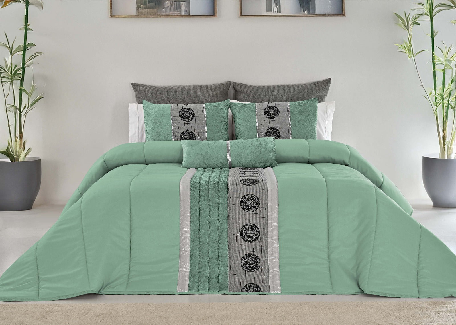 🏯 Colcha TOQUIO Elegante – Conjunto Decorativo con Tres Almohadas, 250 x 260 cm - COLOR VERDE
