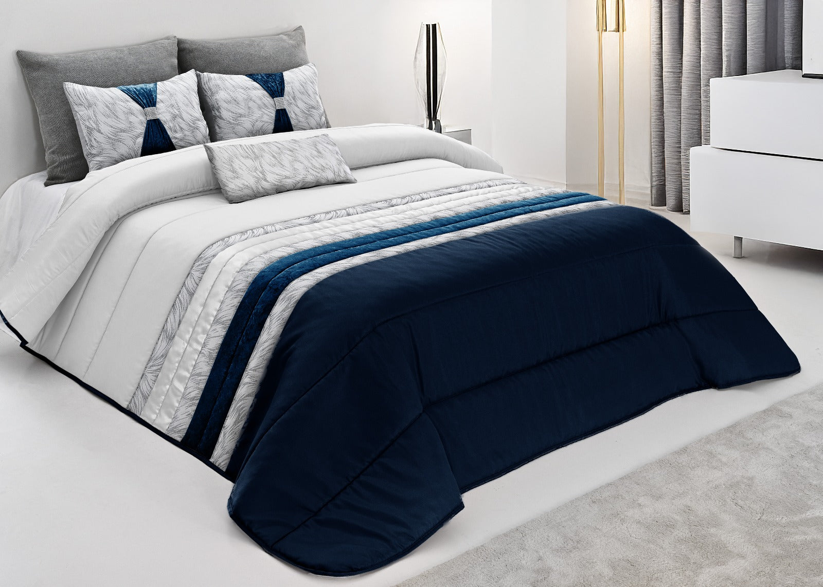 Colcha TROPICAL Elegante – Conjunto Decorativo con Tres Almohadas, 250 x 260 cm - COLOR AZUL OSCURO