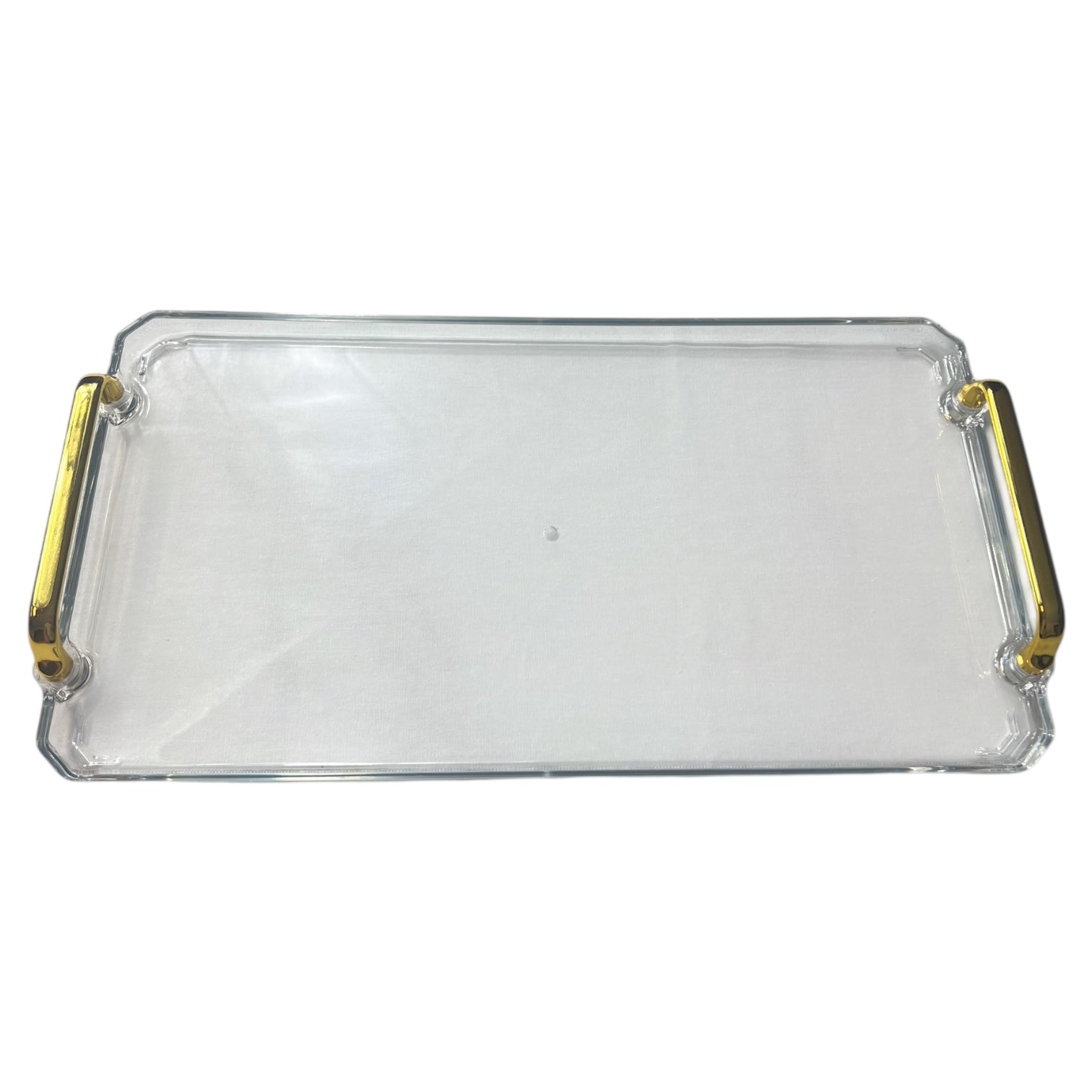 🟠 Bandeja Rectangular Grande con Asas Doradas – De Plástico Transparente: Funcionalidad y Estilo en Uno