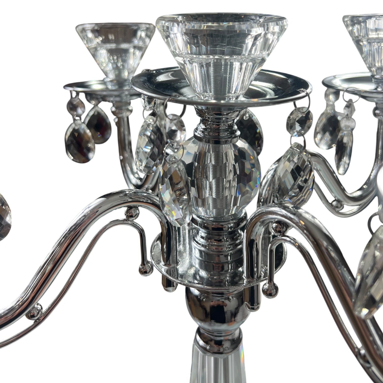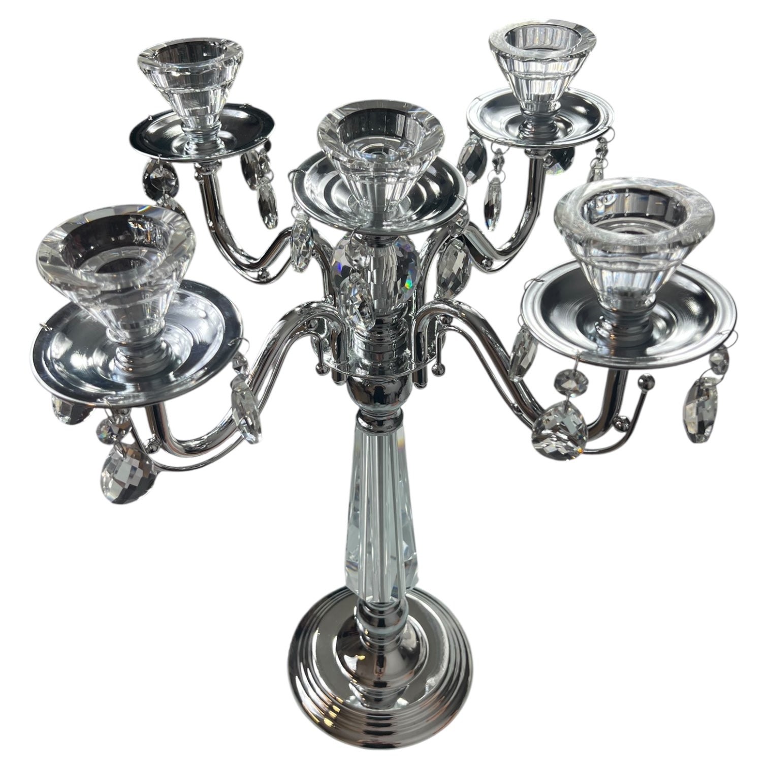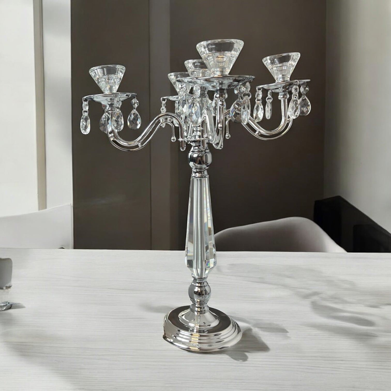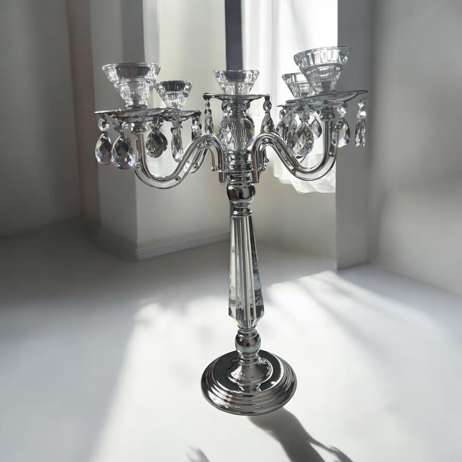 Candelabro Plateado de Cristal para 5 Velas – Centro de Mesa de Lujo