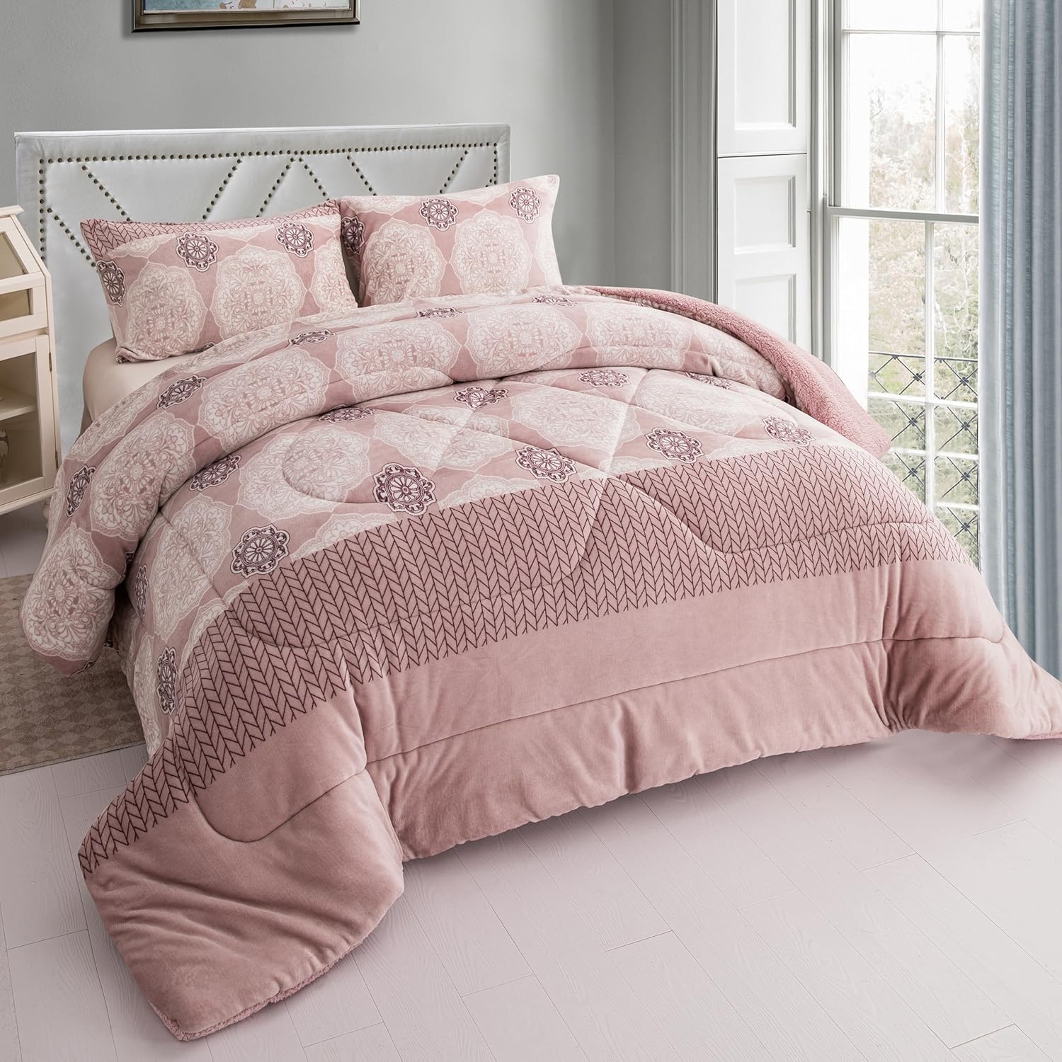 EDREDÓN BORREGO NÓRDICO MODELO ENCANTO PASTEL - COLOR Rosa blanco