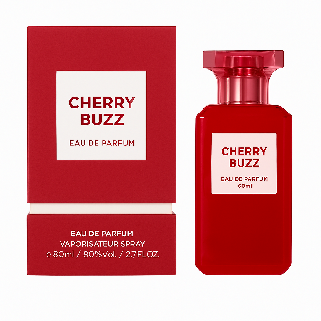 Cherry Buzz 80ml es un perfume irresistible que combina la dulzura jugosa de la cereza con notas suaves de vainilla y un toque de almendra, creando una fragancia cálida, envolvente y moderna.