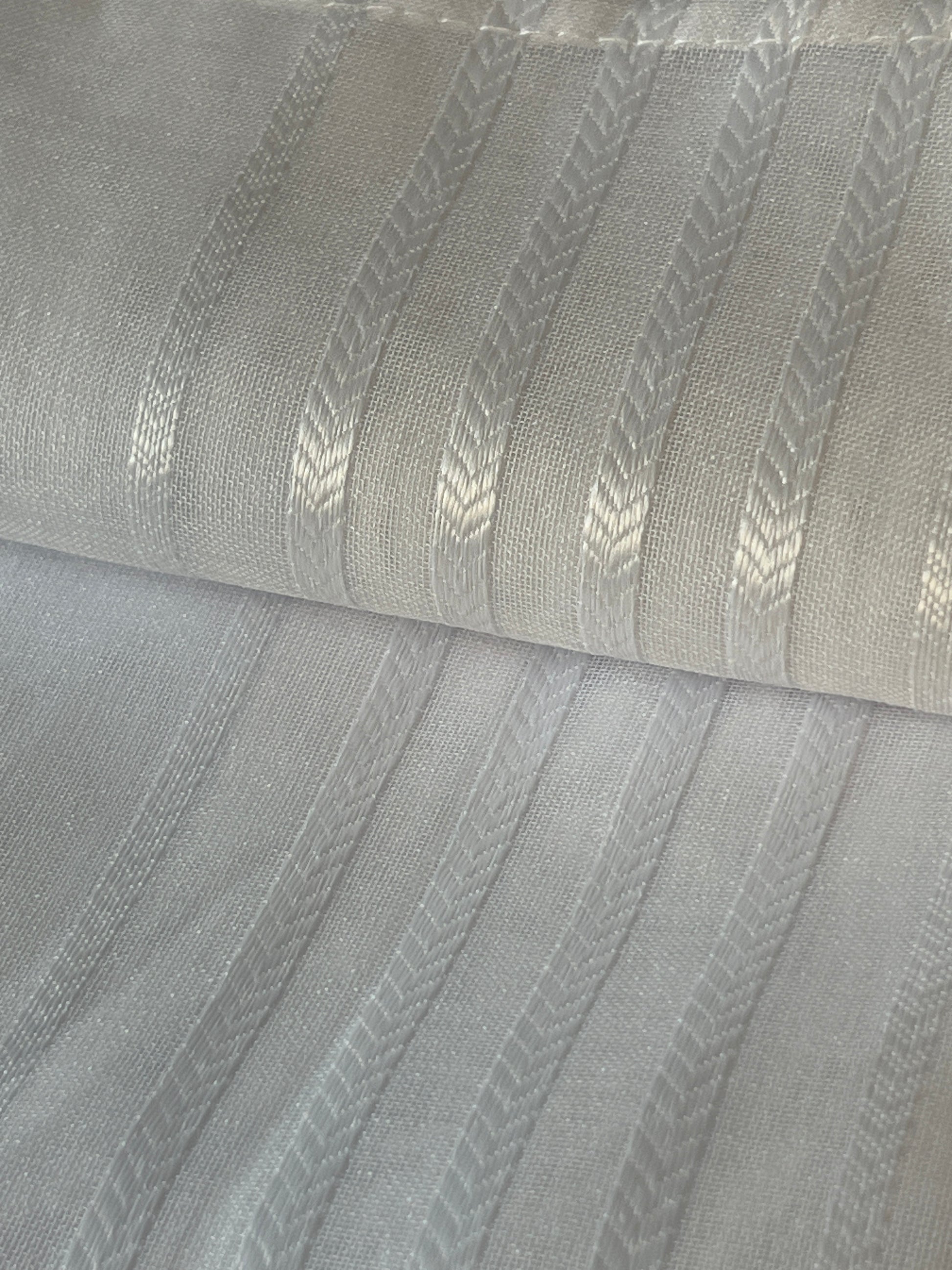 Su textura con líneas verticales discretas aporta un detalle elegante que realza la decoración sin sobrecargarla. Incluye anillas metálicas para colgar fácilmente y conseguir una caída bonita desde el primer momento.
