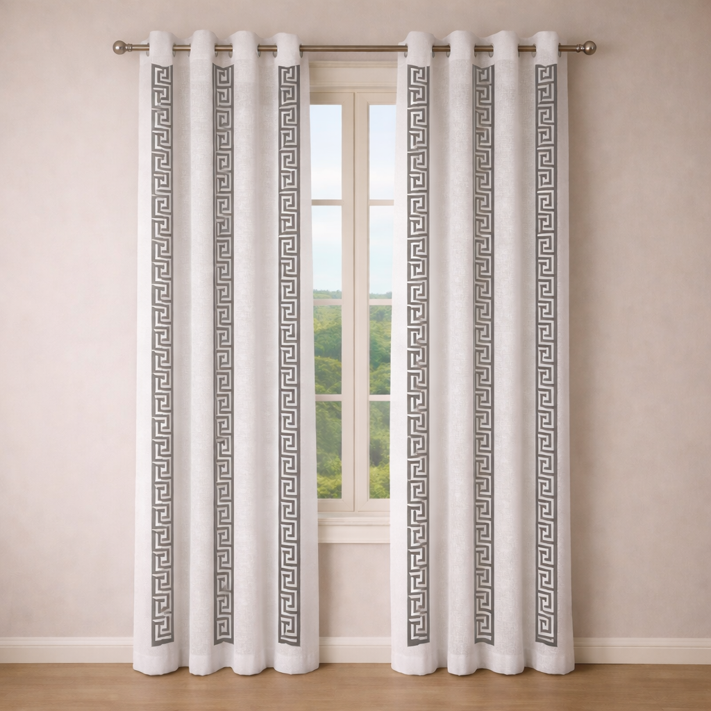 ✅ Voile translúcido con cenefa decorativa tipo greca