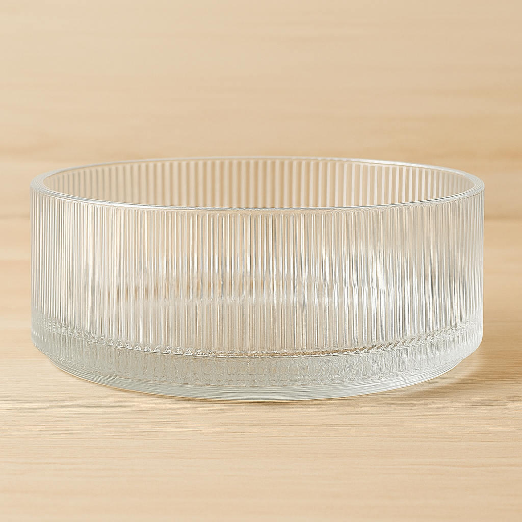 Descubre la elegancia de este cuenco de cristal con textura vertical grabada, fabricado con vidrio de alta calidad que le otorga un brillo y transparencia únicos. Perfecto para presentar ensaladas, frutas, postres o aperitivos con un toque moderno y refinado, este cuenco aporta distinción a cualquier mesa.