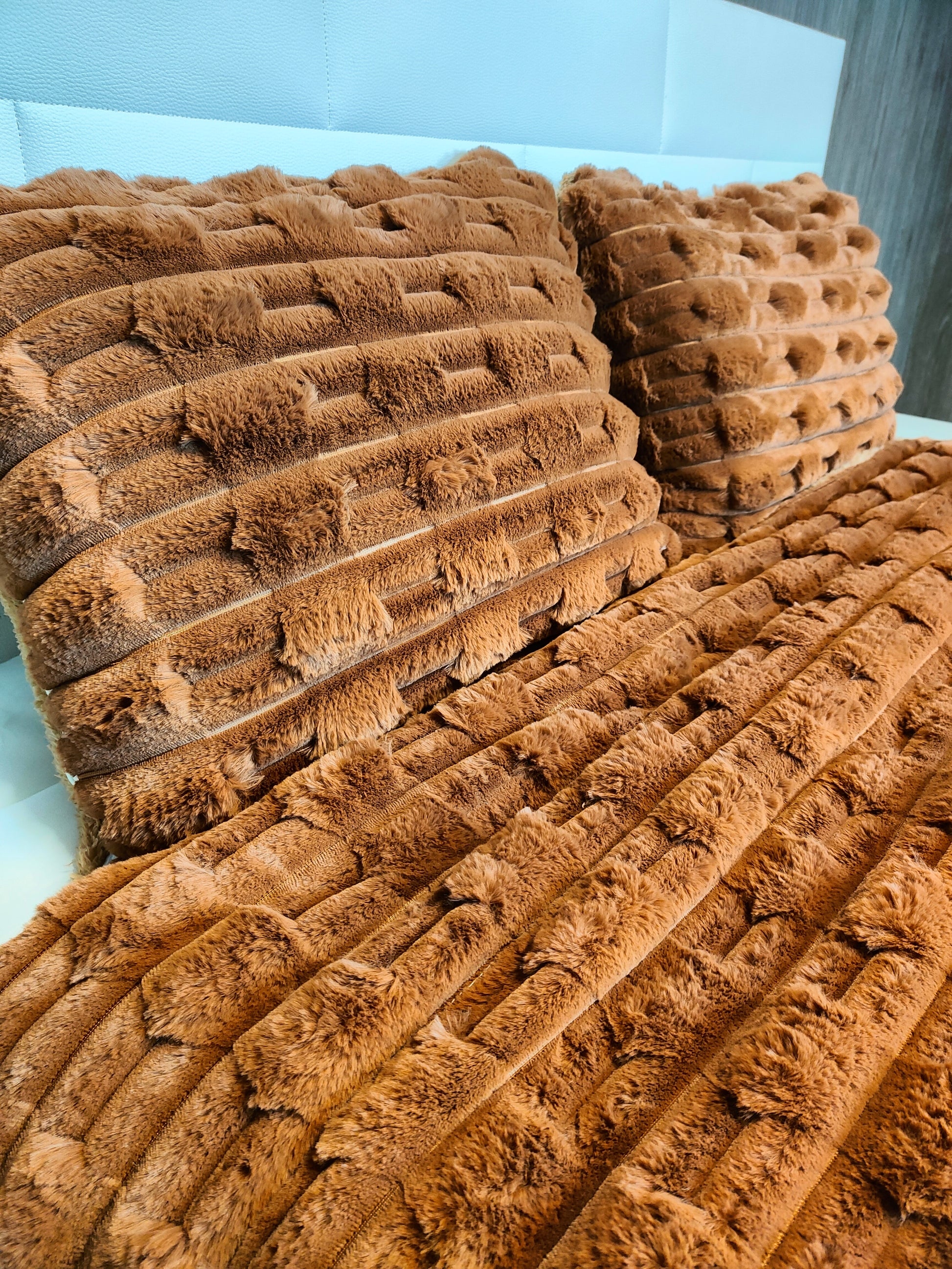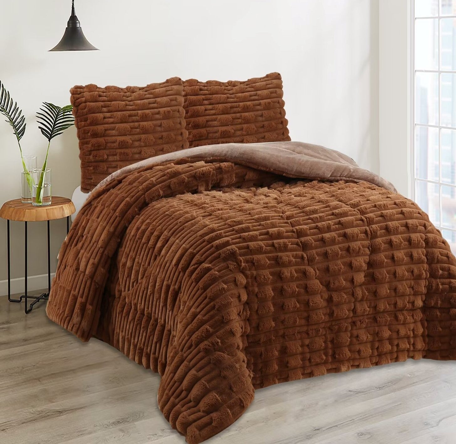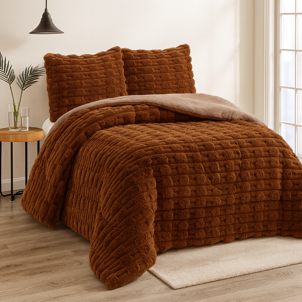 Edredón Aterciopelado con Borreguito MODELO TRAMA DE CANALÉ - COLOR MARRÓN