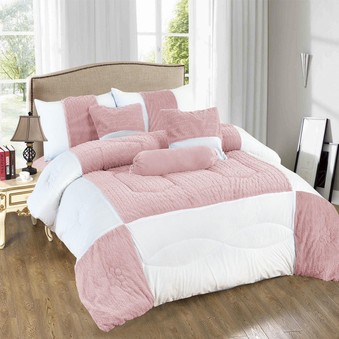 Edredón Aterciopelado con Borreguito MODELO TRAMA DE CANALÉ TRENZADO - COLOR ROSA