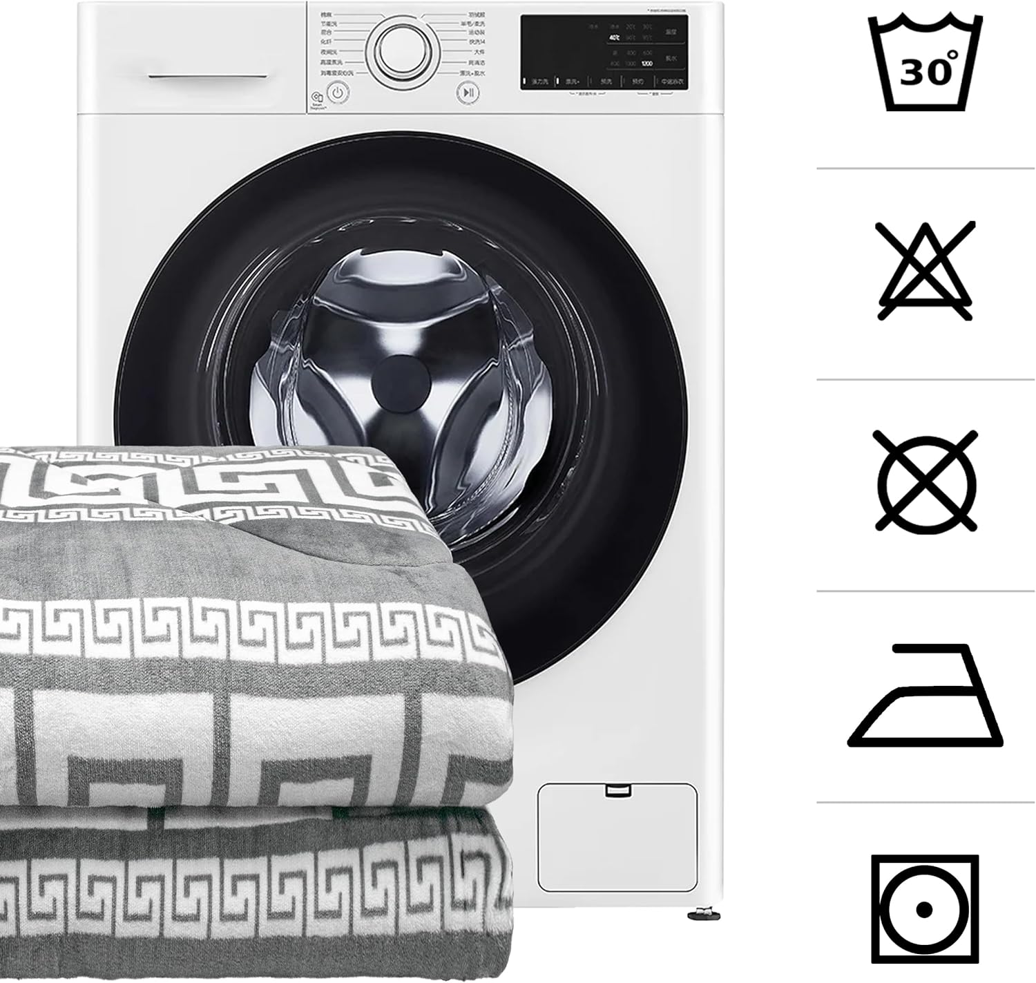 Fácil lavado a 30º en lavadora, no hace bolitas, secado rápido y no necesita plancha.