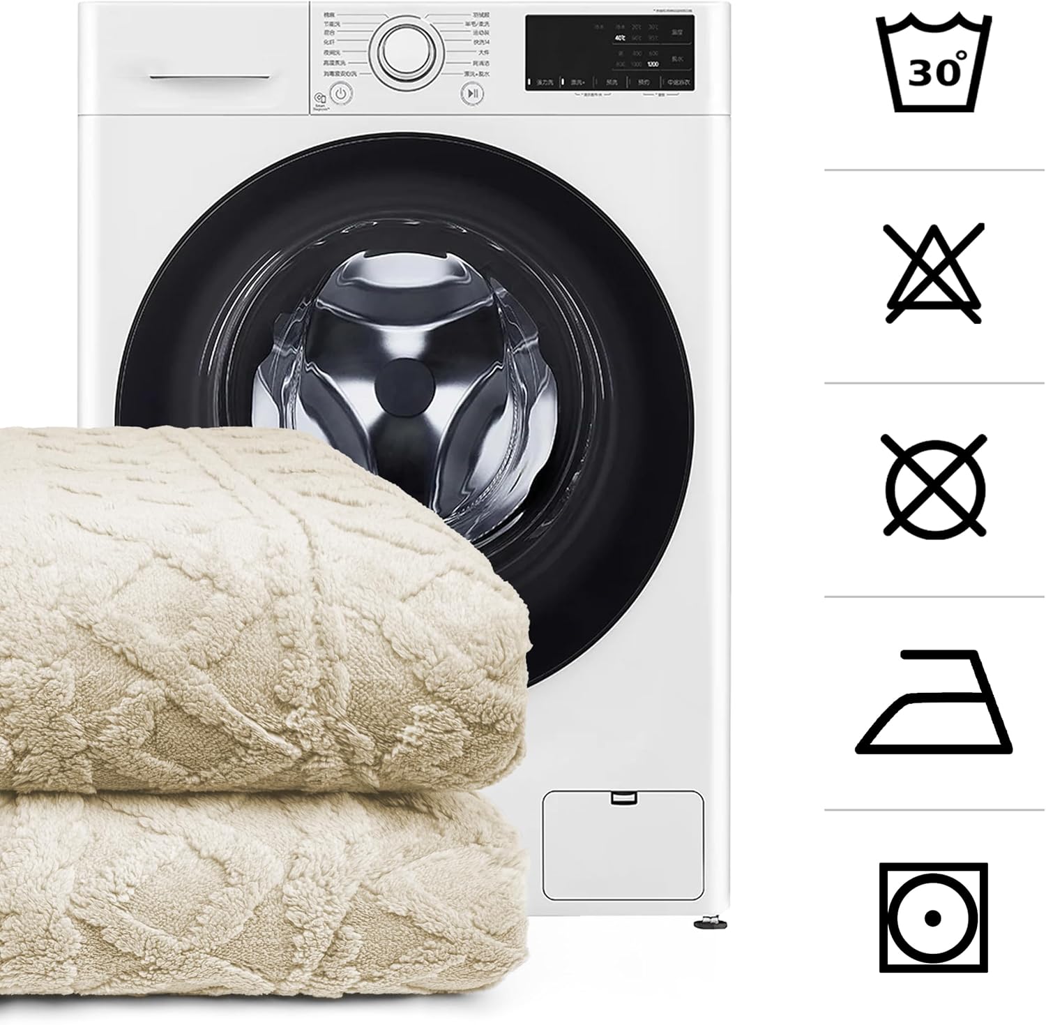 Fácil lavado a 30º en lavadora, no hace bolitas, secado rápido y no necesita plancha.