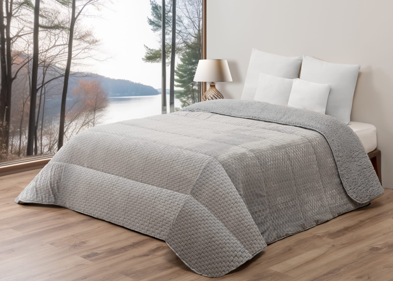 Edredón Comforter Polar con Sherpa COLOR GRIS – MODELO Trama Elegance - 240 x 260 cm (POLAR 14)