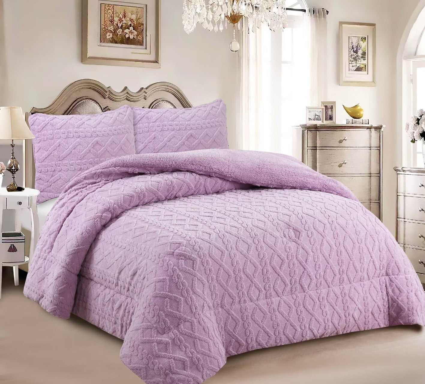 Edredón con Borrego Modelo Trenzas – 230 x 250 cm - COLOR LILA