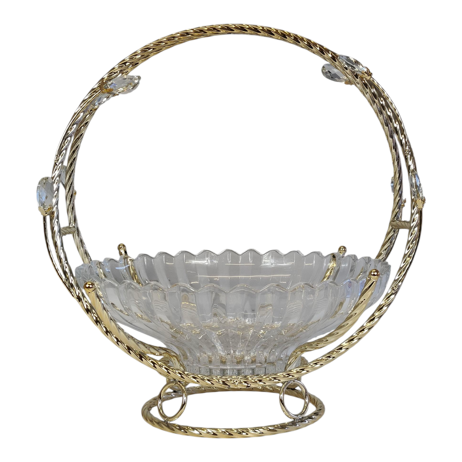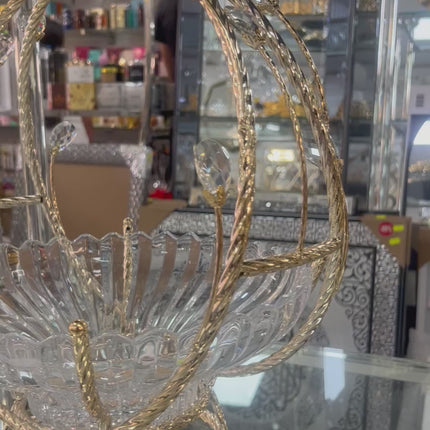 Frutero de Cristal con Asa Dorada y Detalles Decorativos – 28 cm