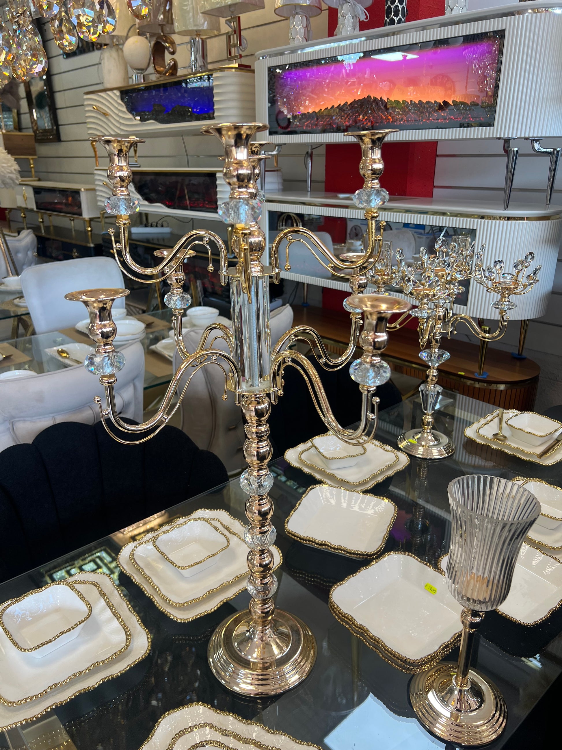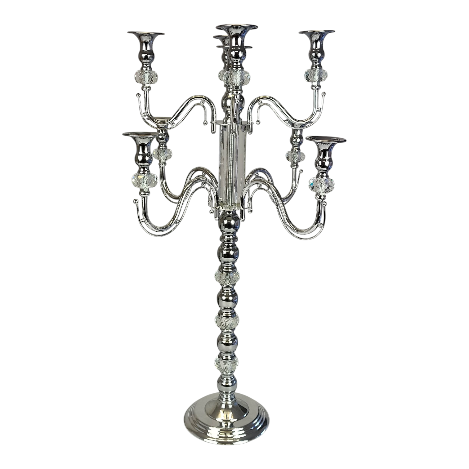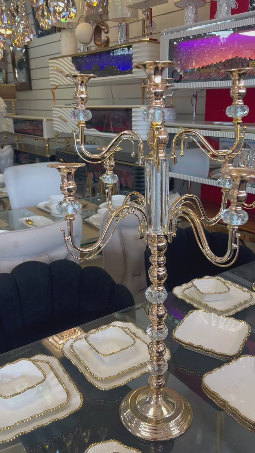 ✨ Ideal para eventos, recepciones, salones o decoración de interiores, este candelabro combina la robustez del metal con la delicadeza del cristal, ofreciendo una presencia imponente y refinada. Perfecto para colocar velas largas o tipo LED y realzar la decoración de lujo.