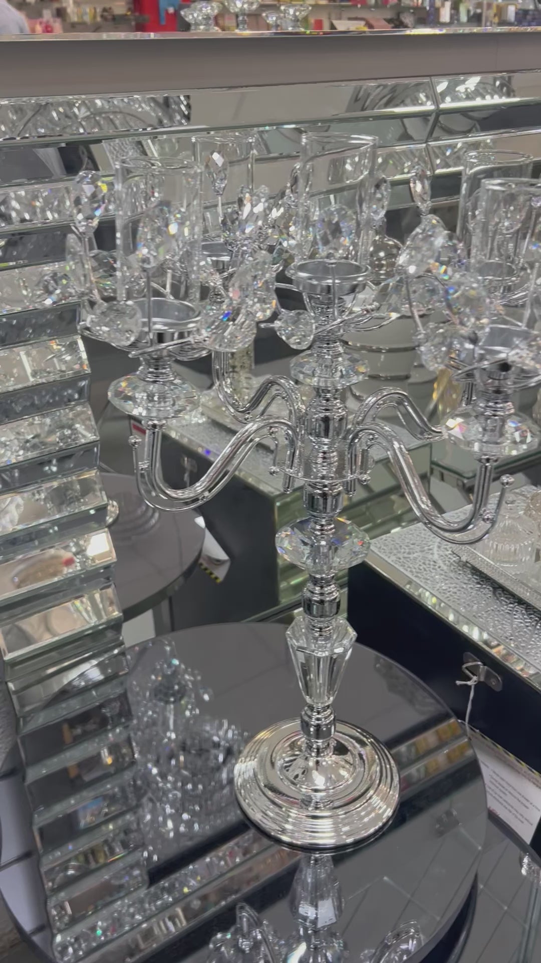 Diseño con 5 brazos y portavelas decorados con cristales