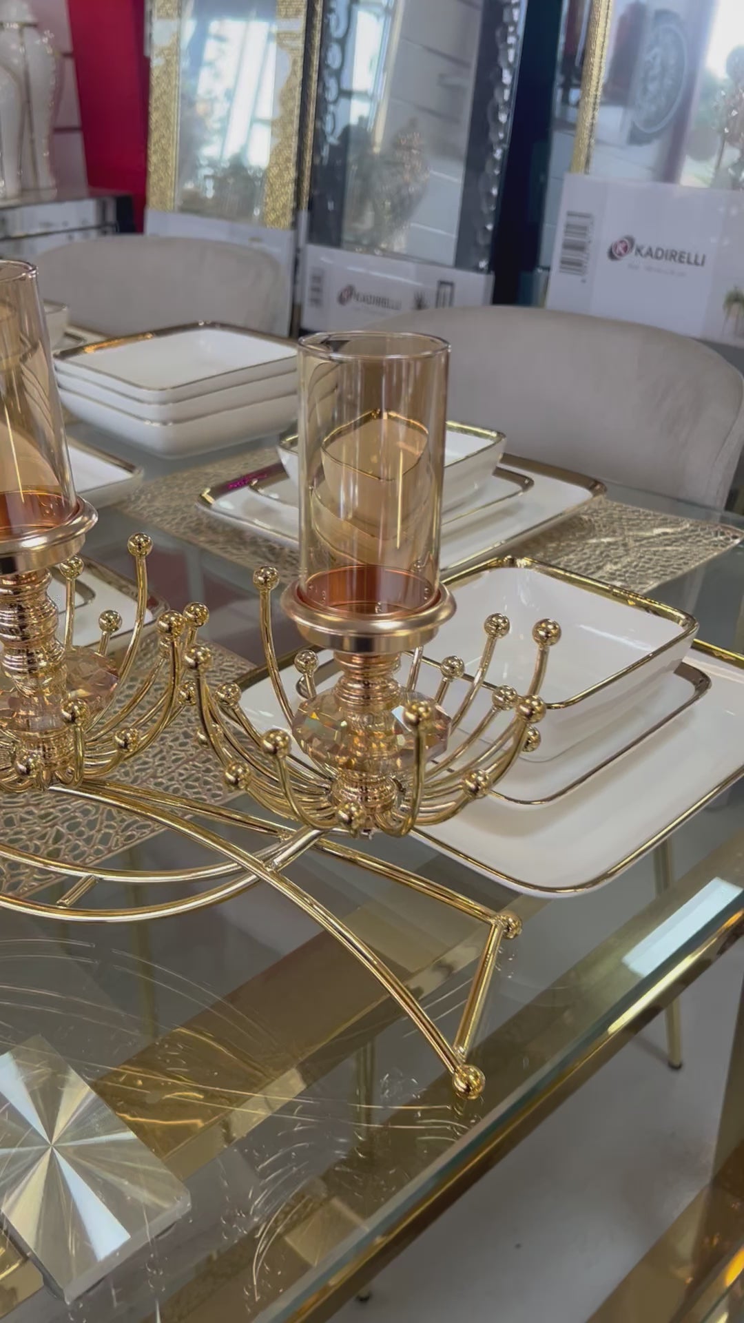 💛 Ideal como centro de mesa en salones, comedores o eventos especiales, este candelabro combina elegancia y modernidad, proyectando una luz cálida y envolvente.
