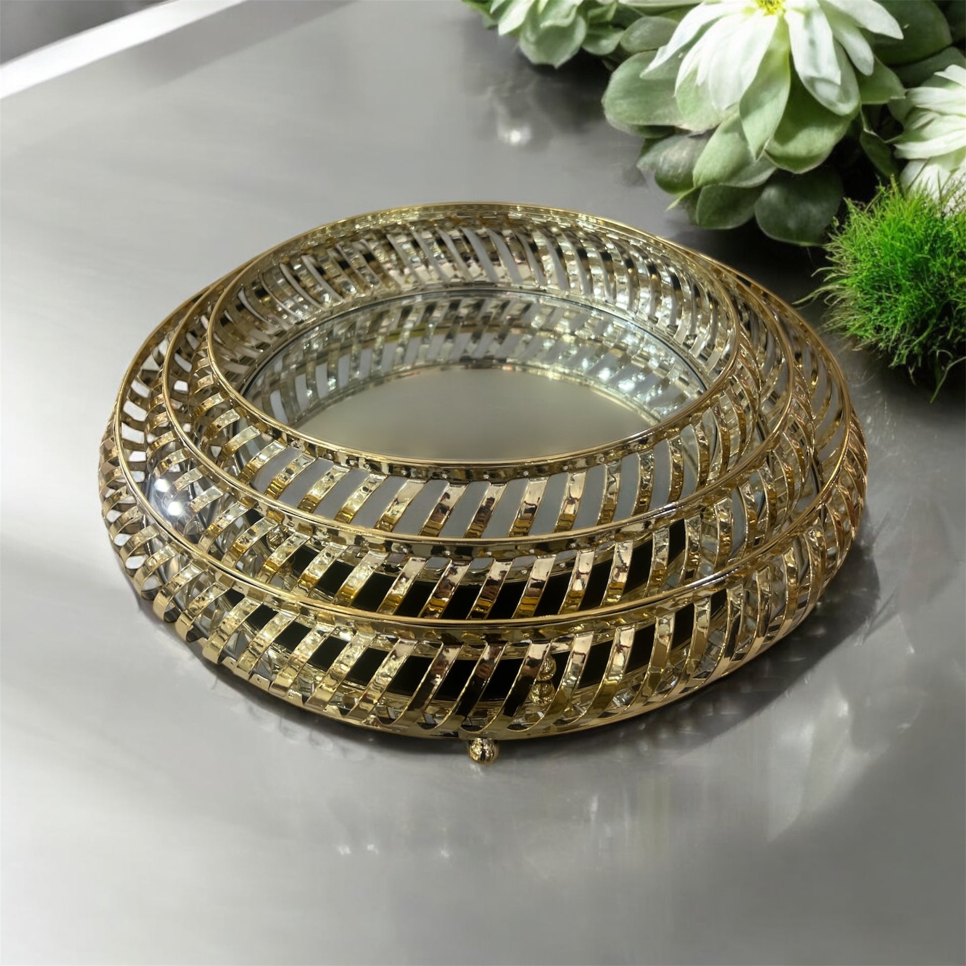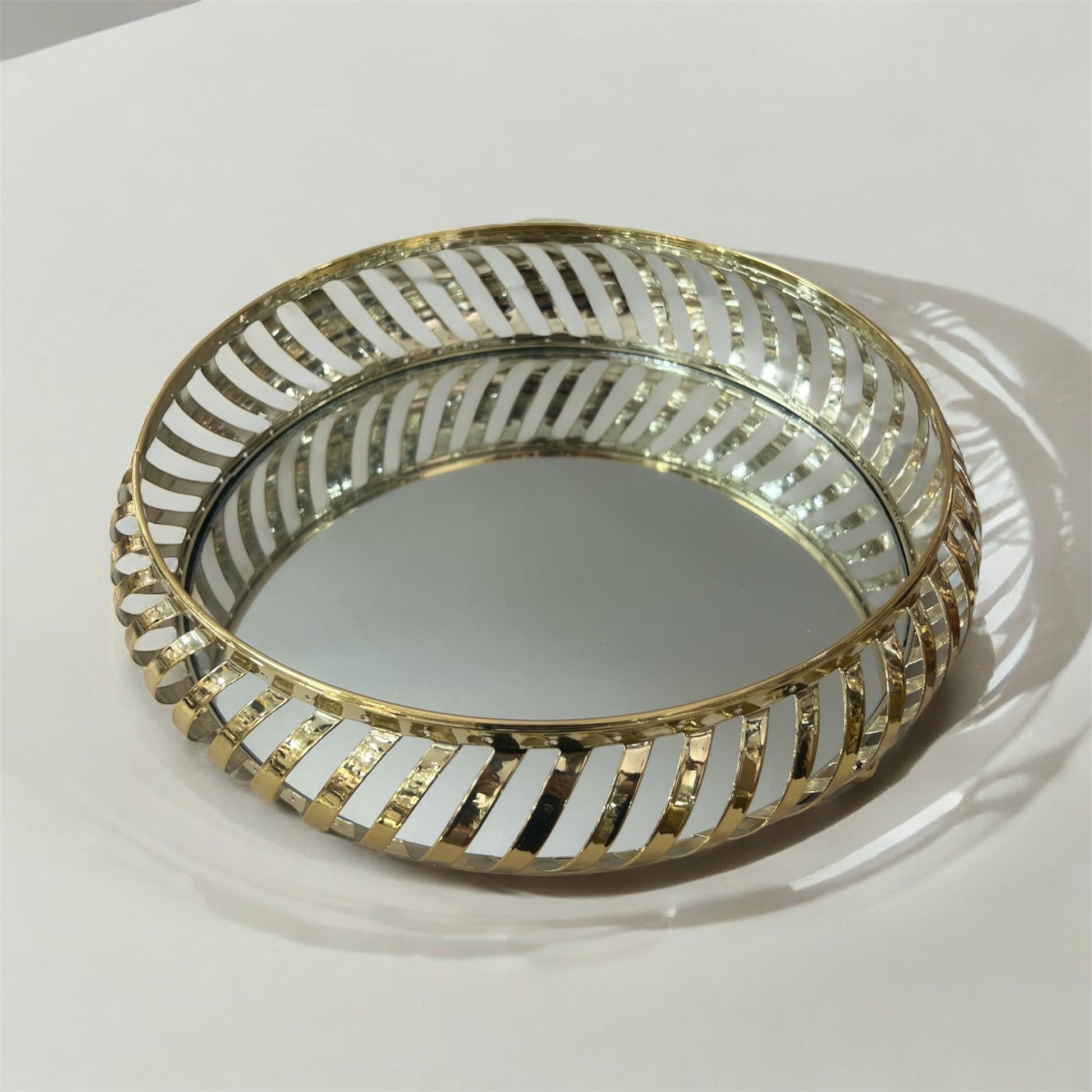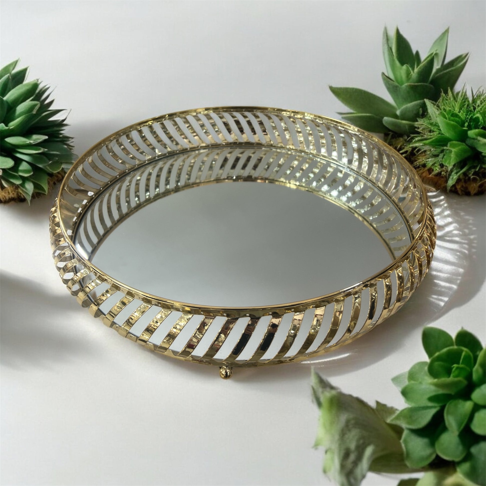 Centro de Mesa Redondo de Metal Dorado con Espejo Decorativo