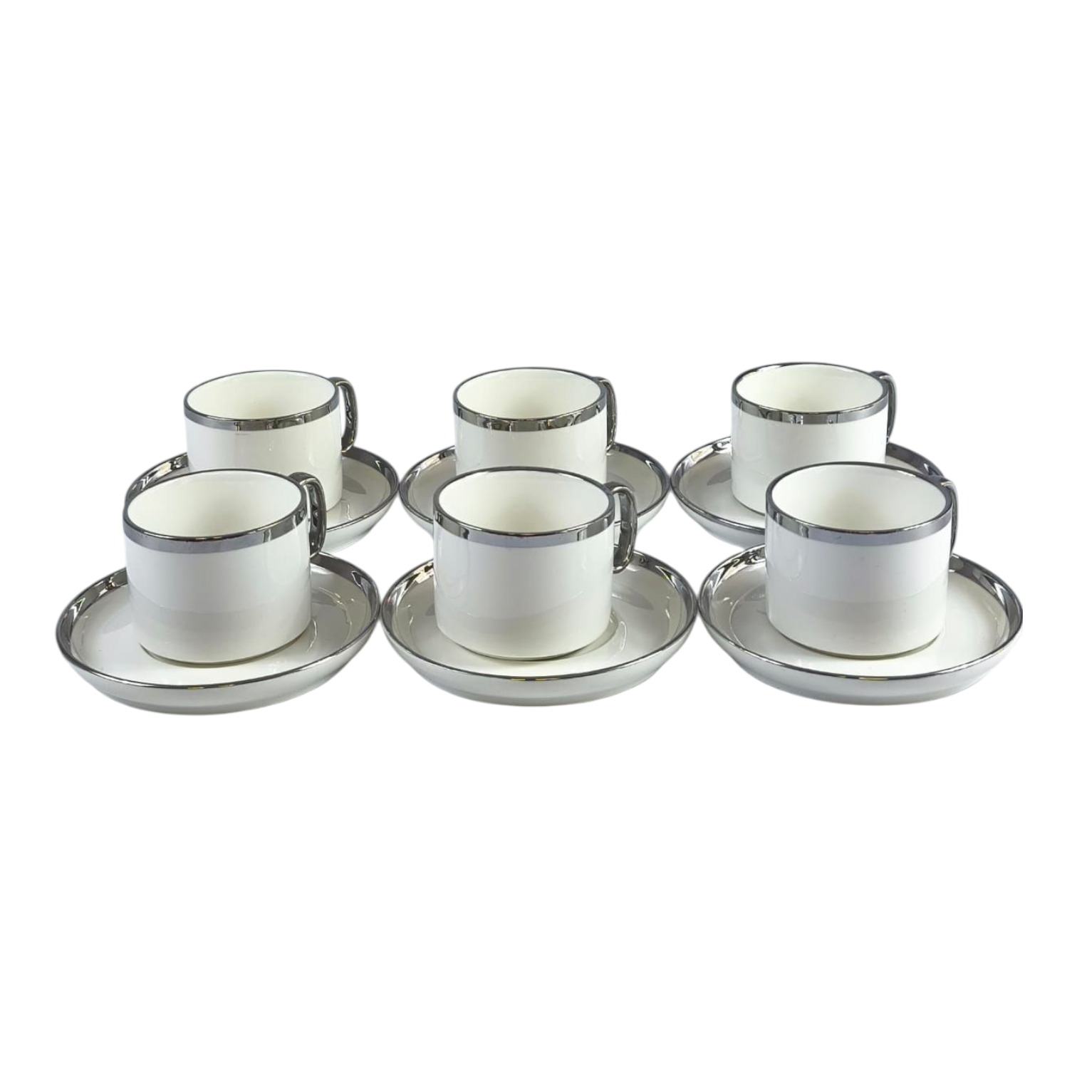 ☕ Set de 6 Tazas con Platillos Elegantes – Detalle Plateado para Café o Té 🍵