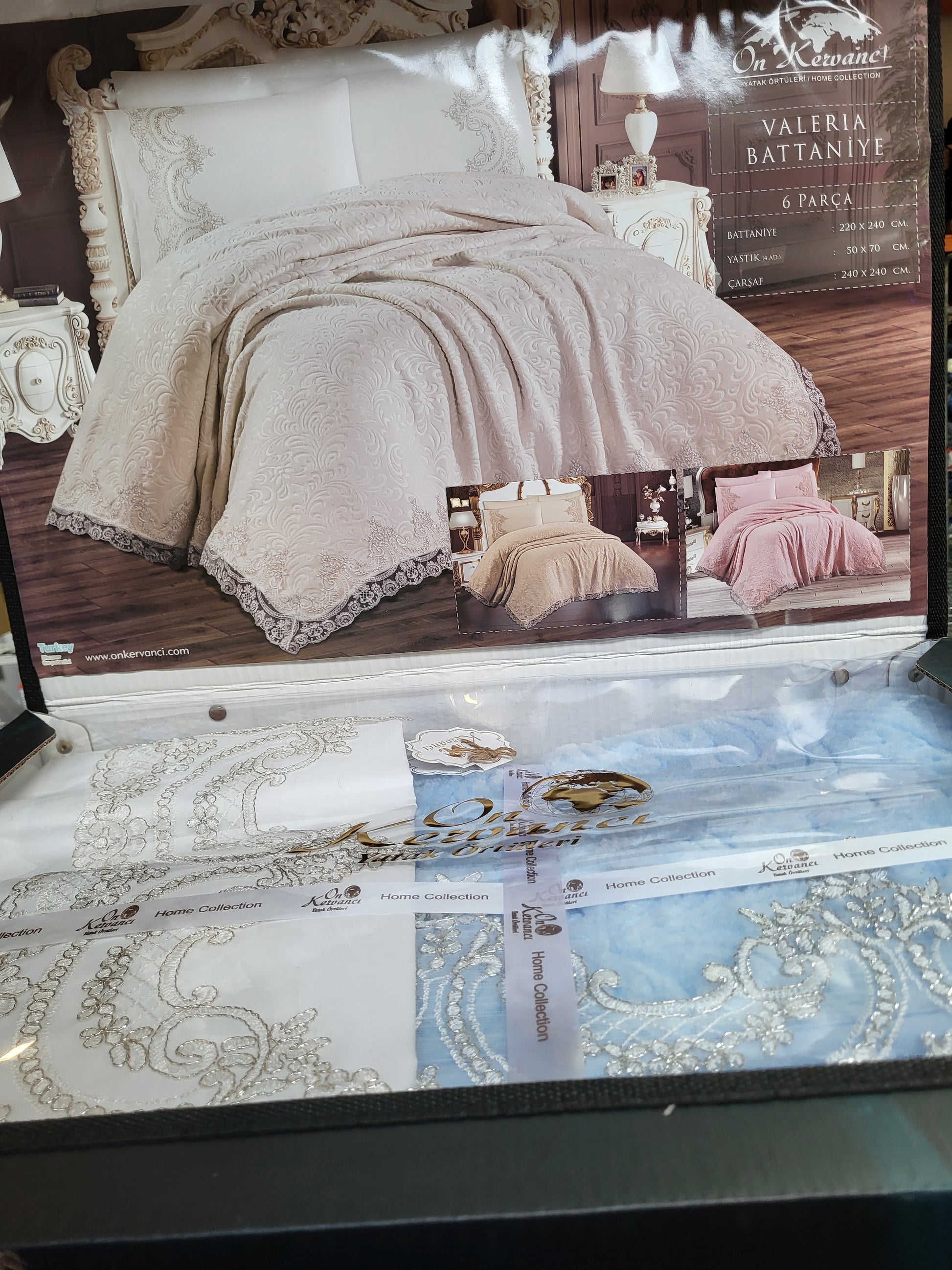 Añade un toque de lujo y elegancia a tu dormitorio con este juego de manta de encaje turco de 6 piezas. Diseñado con delicados detalles en encaje en las esquinas, este set es ideal para quienes buscan estilo y comodidad.