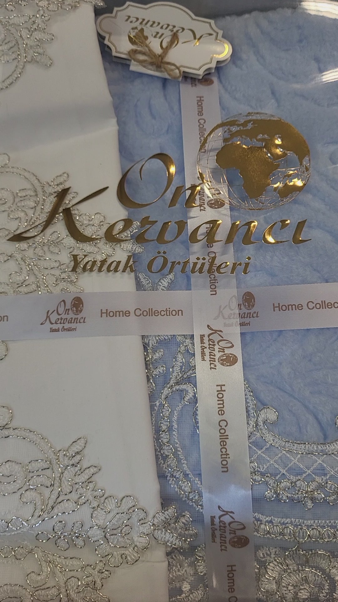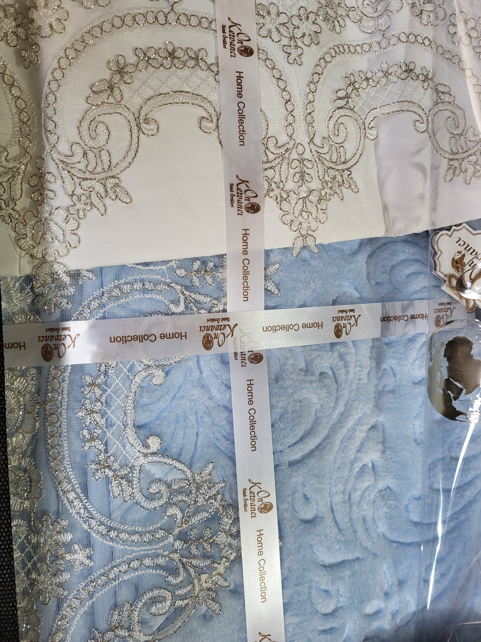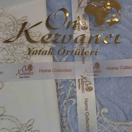 Juego de Manta de Encaje Turco Azul - 6 Piezas | Elegancia y Confort