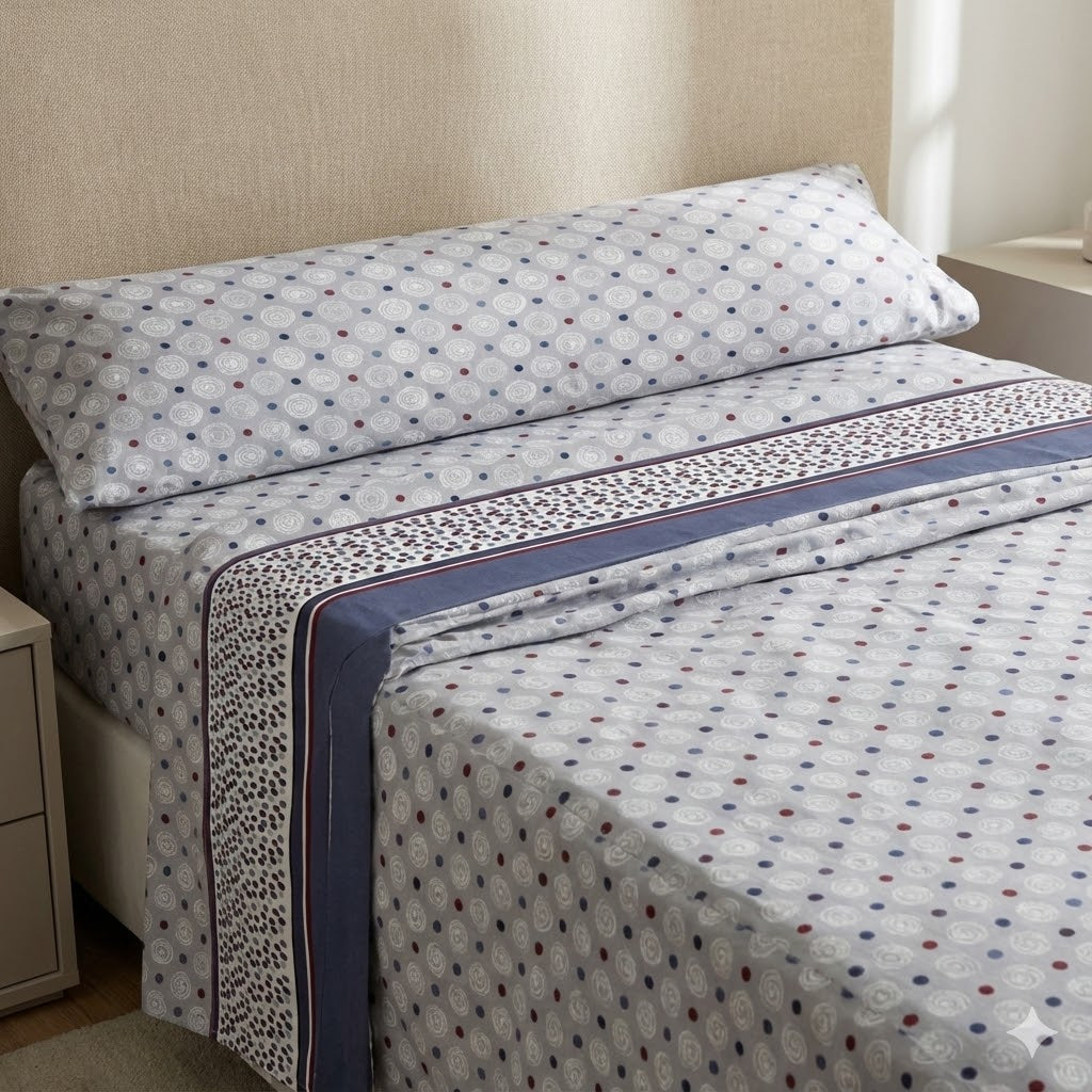Juego de Sábanas Coralina 3 Piezas Círculos Azul | Térmicas Invierno | 100% Poliéster