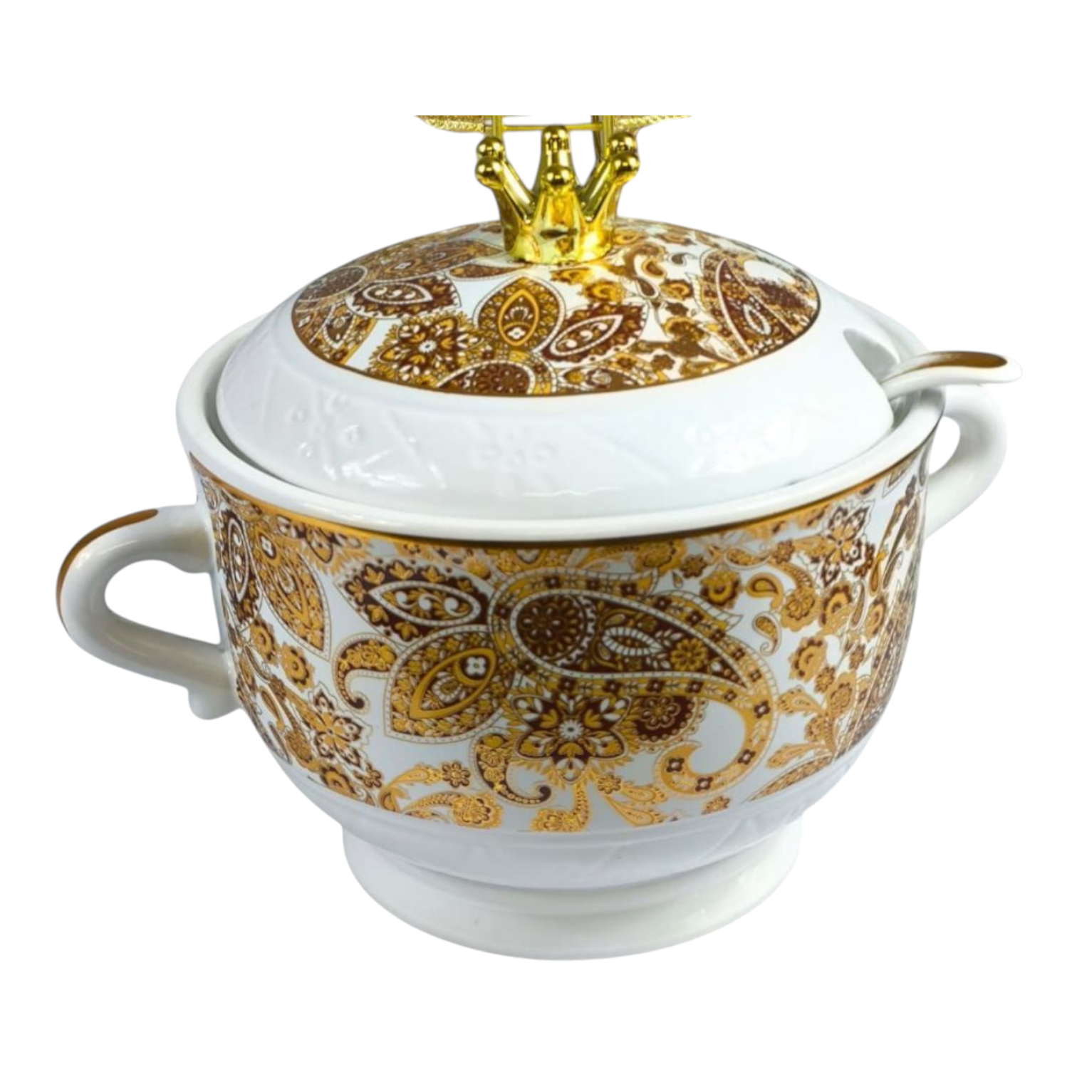 Sorprende a tus invitados con este hermoso set de sopa de cerámica decorado con un elegante diseño floral dorado 🌸💫. Perfecto para servir sopas 🥣, cremas 🍛 o postres 🍮 con estilo y distinción.