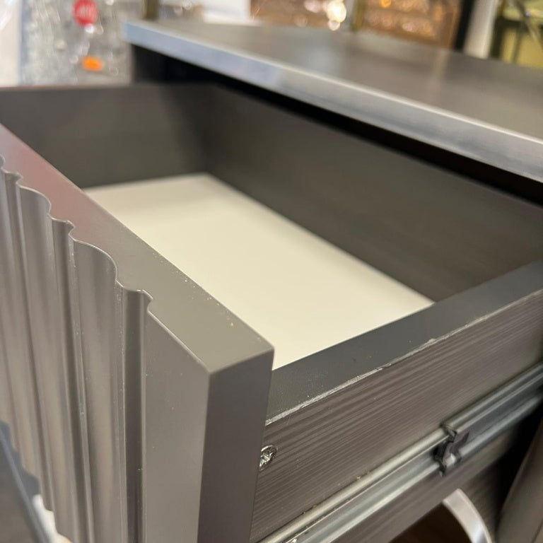 Mesa de TV con chimenea digital - COLOR GRIS CON DETALLES EN PLATEADO