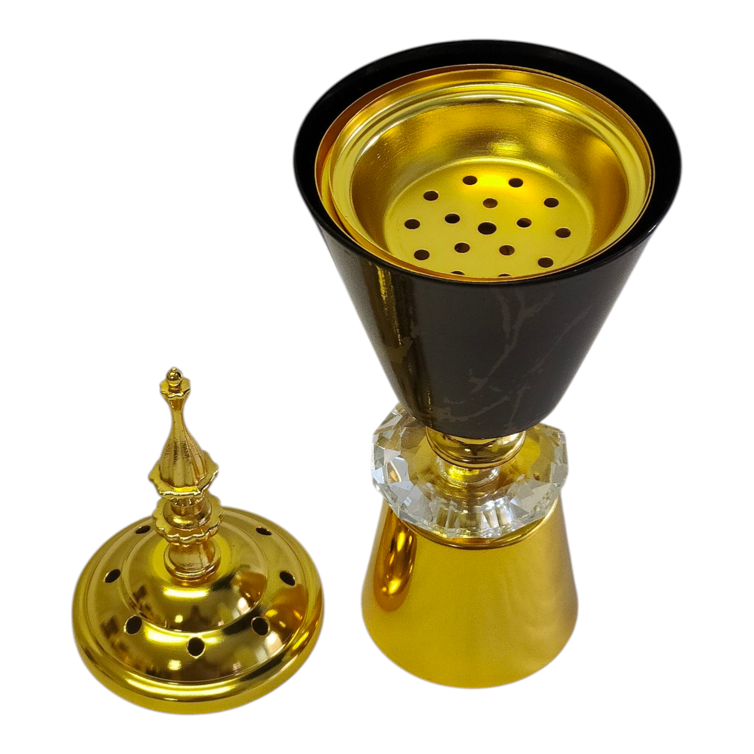 Quemador de Incienso Árabe Negro y Dorado — Diseño Elegante con Base de Cristal