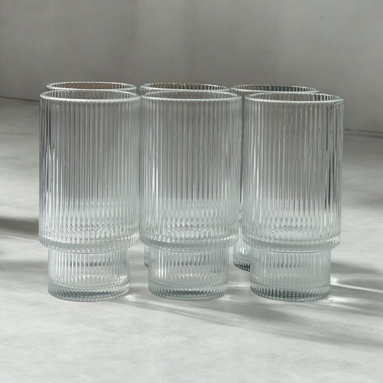 🥂 Set de 6 Vasos Altos – Diseño Acanalado de Cristal