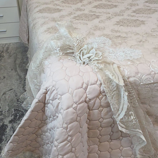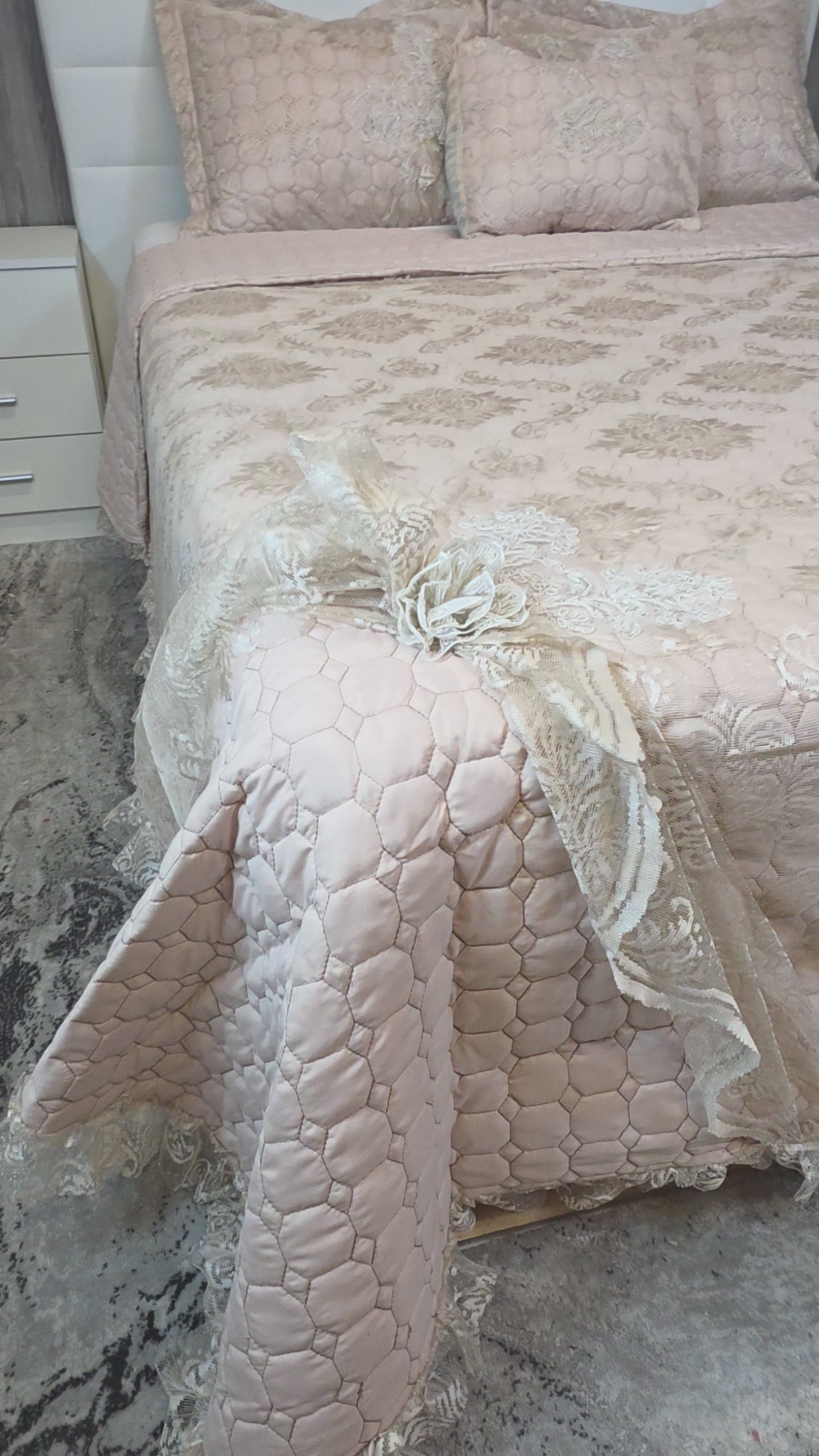 Set de Cama de Lujo "Hayal" – Cubrecama Acolchado con Encaje - COLOR CAPUCHINO