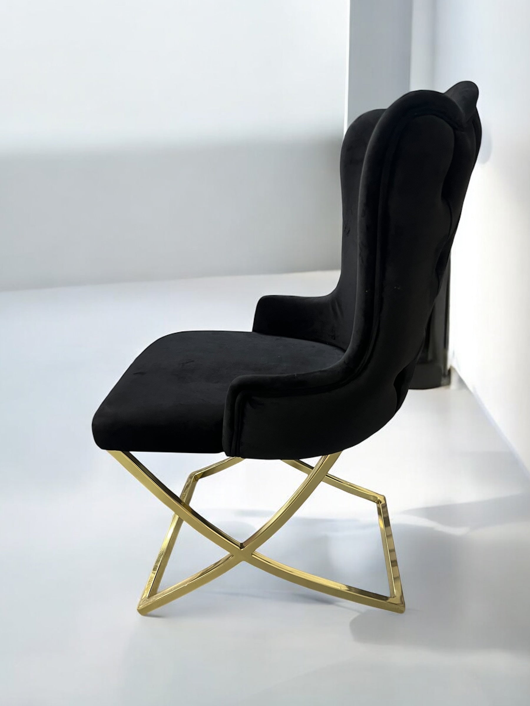 Silla terciopelo BELINDAV28 color negro, patas de metal dorado