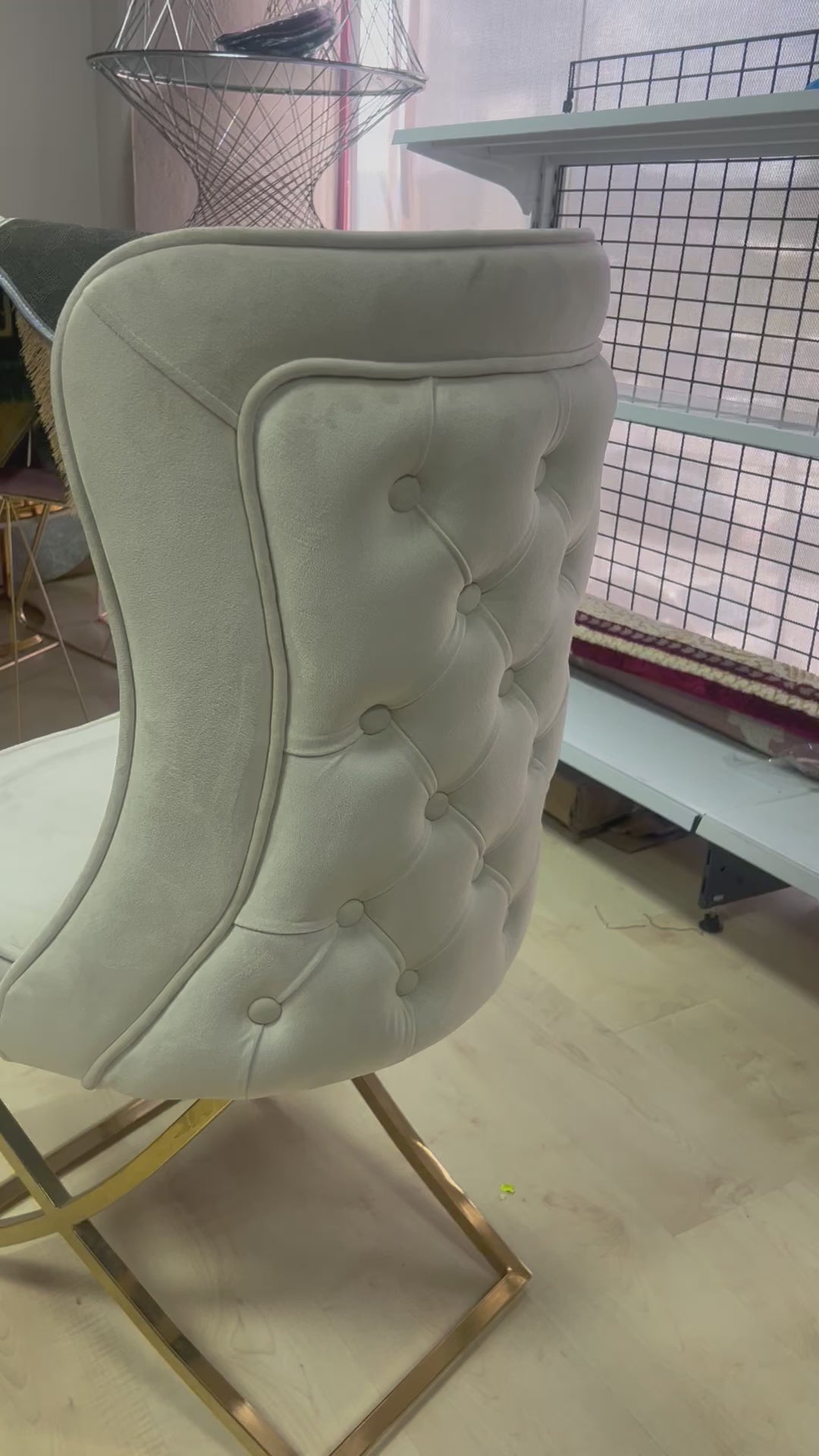 Silla terciopelo para comedor beig claro, patas metal dorado