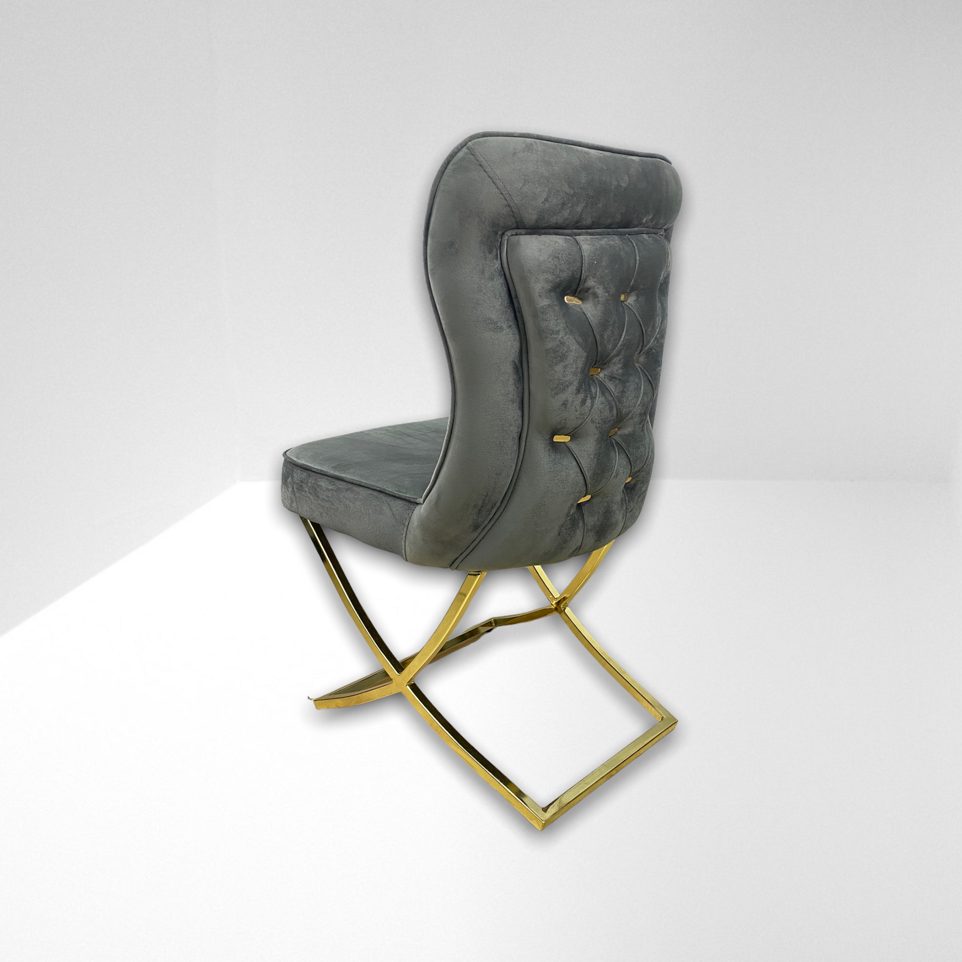Silla terciopelo para comedor CLOWER SANDALYE V27 gris oscuro ganchos dorado, pata metal dorado