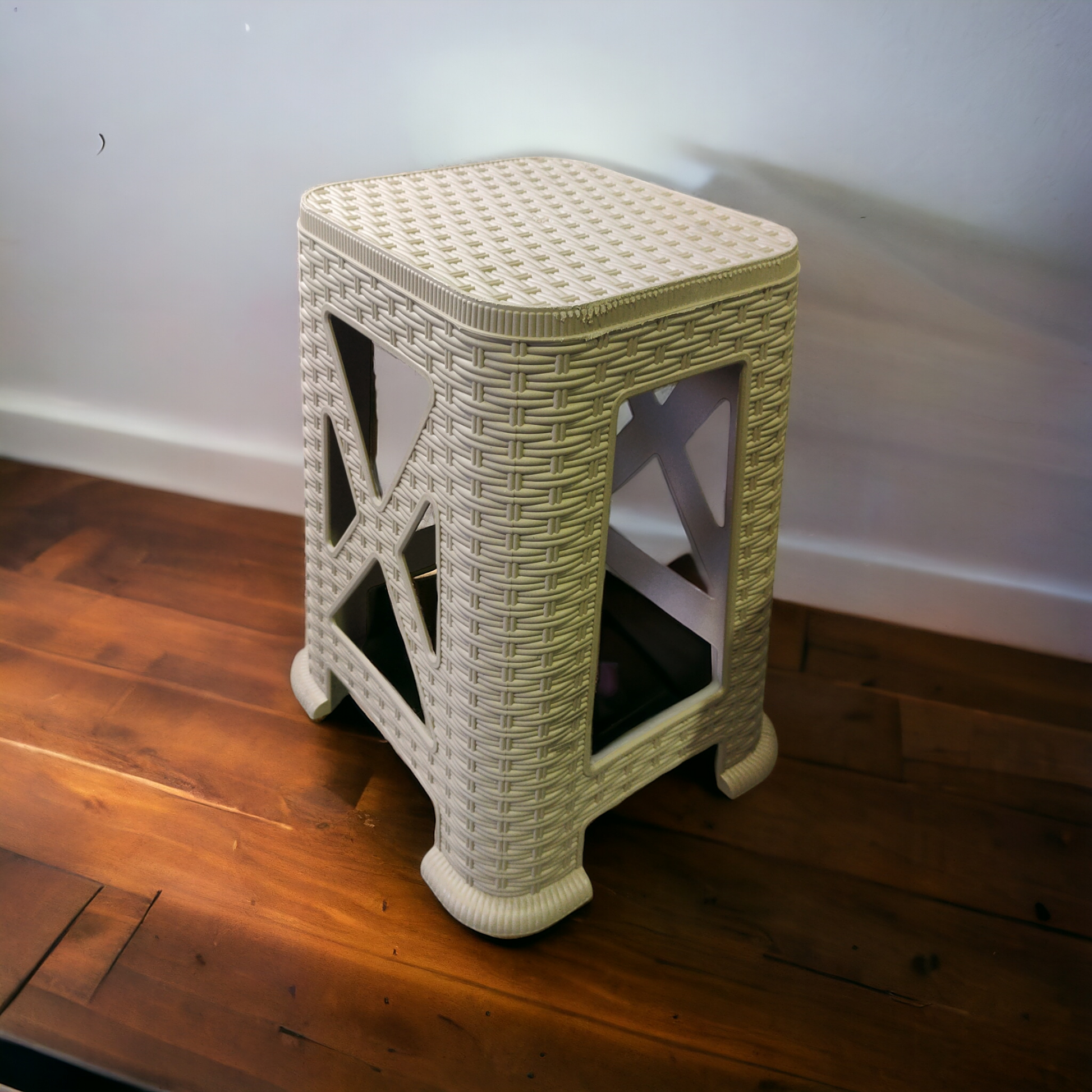 Este taburete multifuncional está fabricado en España con materiales de alta calidad. Es fácil de limpiar, resistente al desgaste, y está disponible en varios colores para combinar con la decoración de cualquier espacio. Además, su diseño apilable lo convierte en una opción práctica y funcional para el almacenamiento.