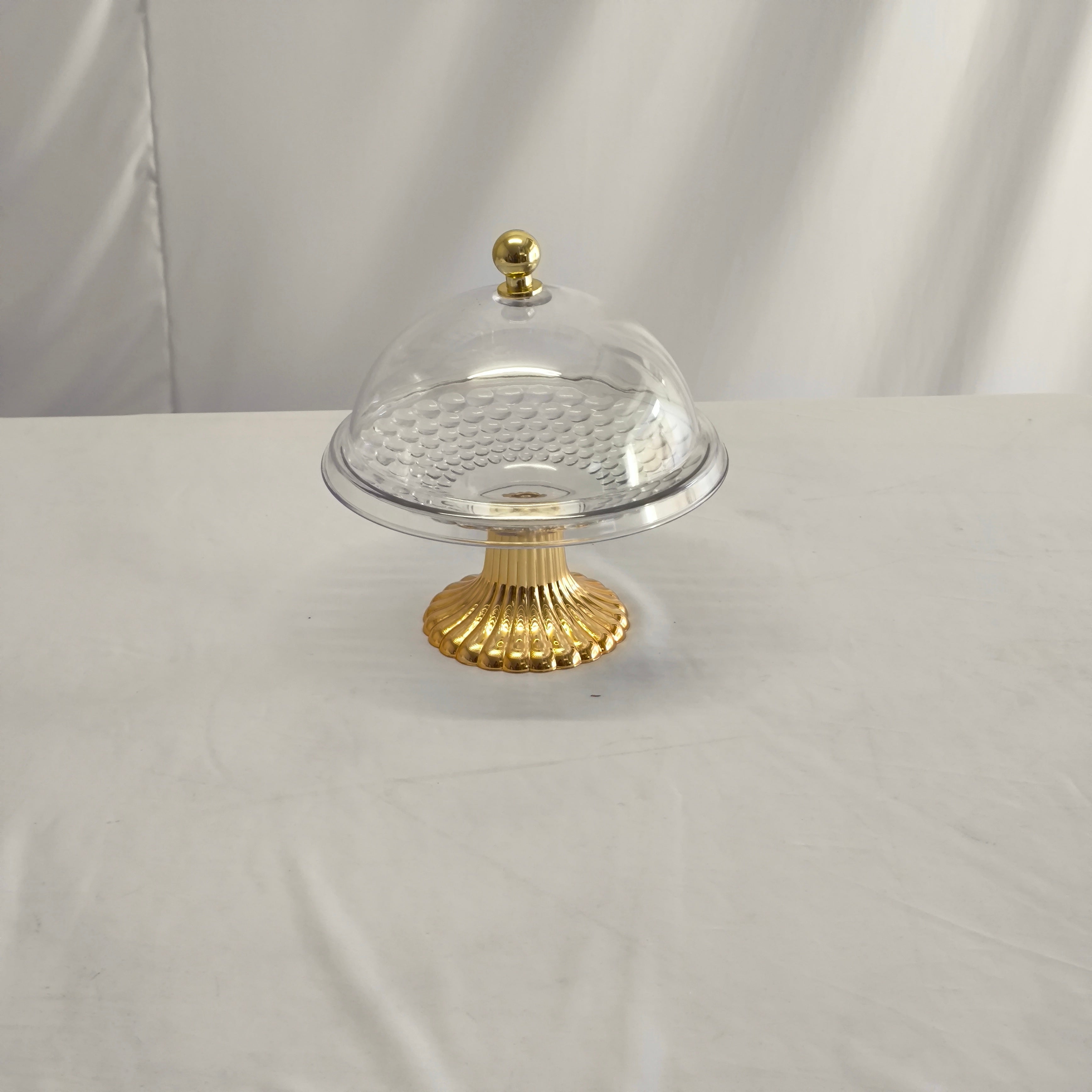 Campana Decorativa de Plástico Transparente con Base Dorada – Estilo Elegante