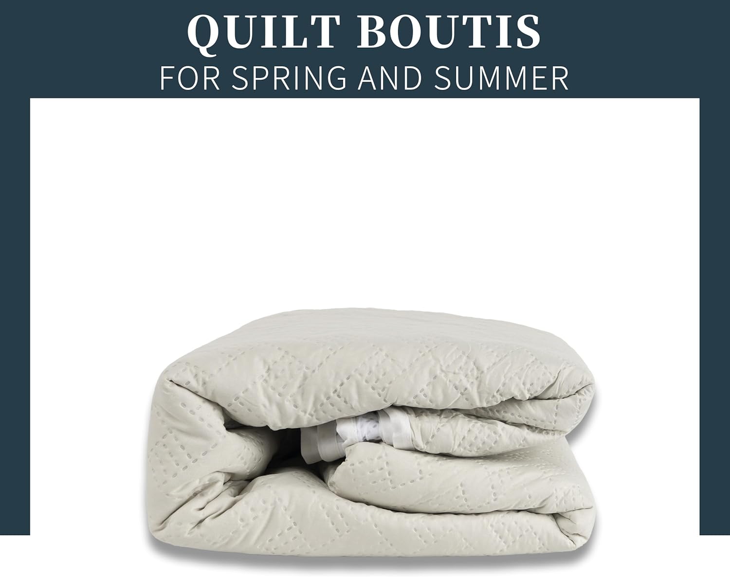 Edredom Boutis para primavera e verão, liso reversível em dois tons - bege
