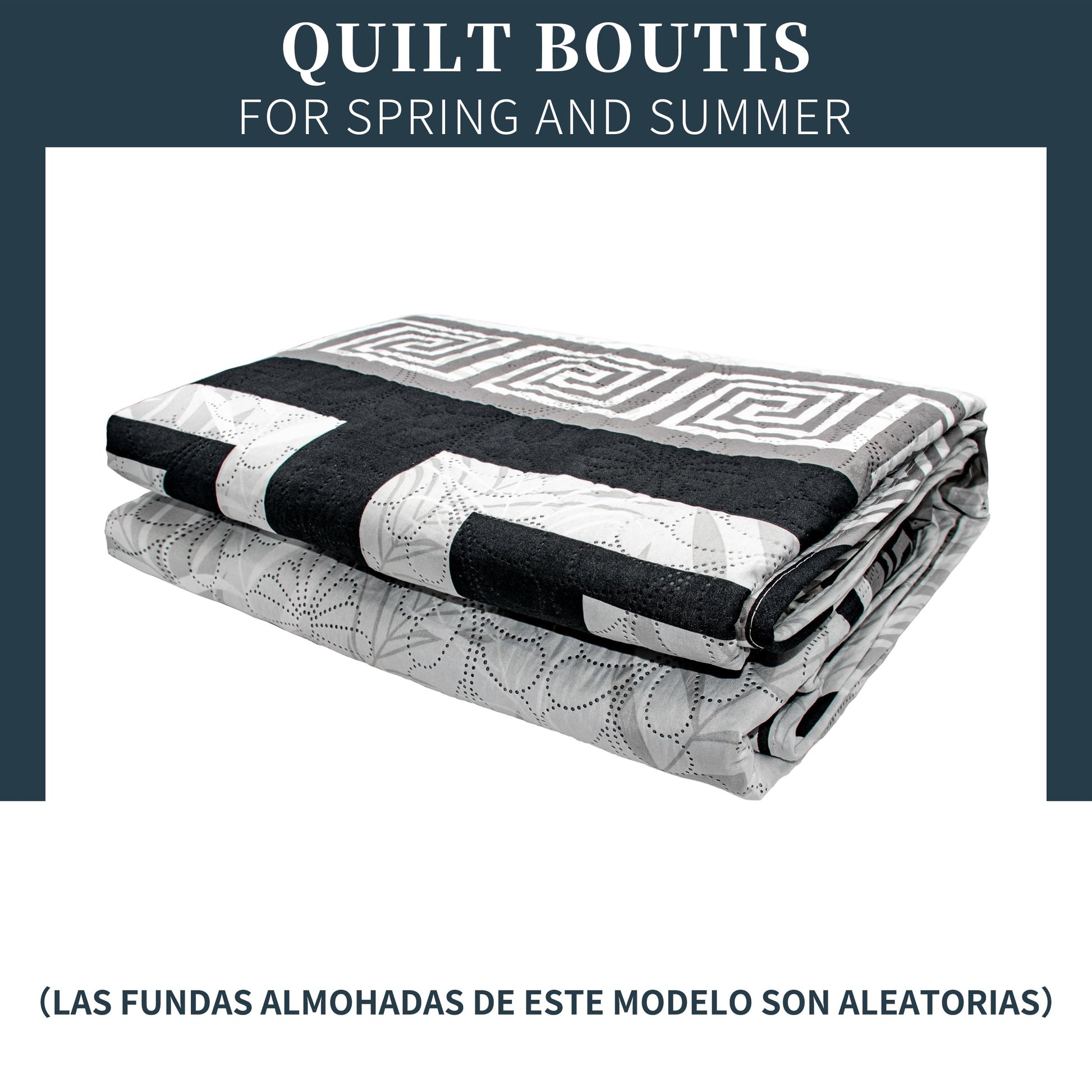 Edredom Boutis para primavera e verão, liso reversível em dois tons - VERSACE MODELO PRETO