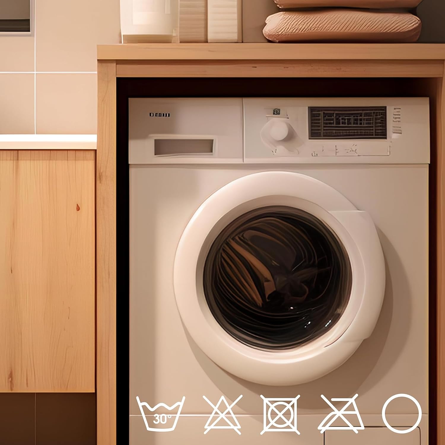 - Recomenda-se lavar à mão ou à máquina em ciclo delicado. Temperatura abaixo de 30ºC e secar em máquina em temperatura baixa.