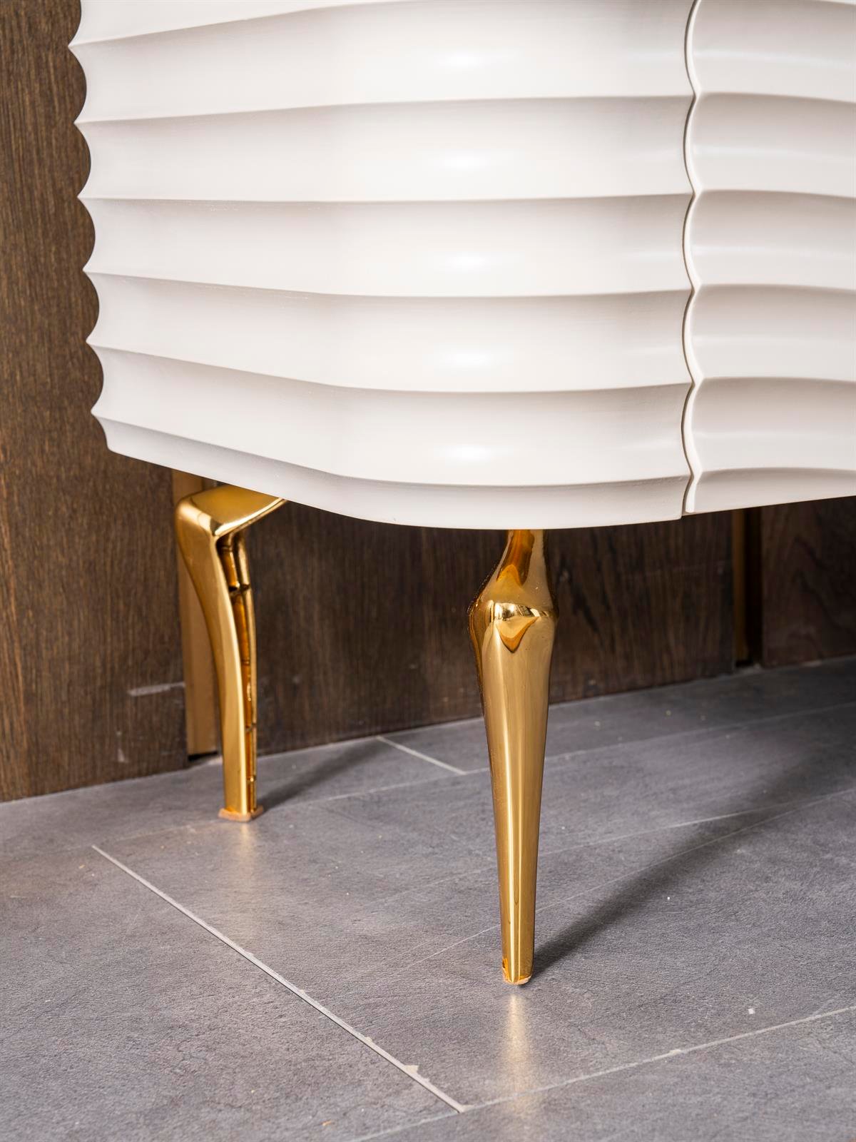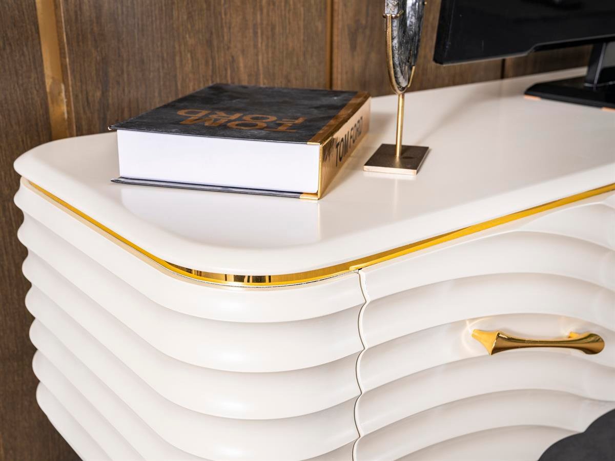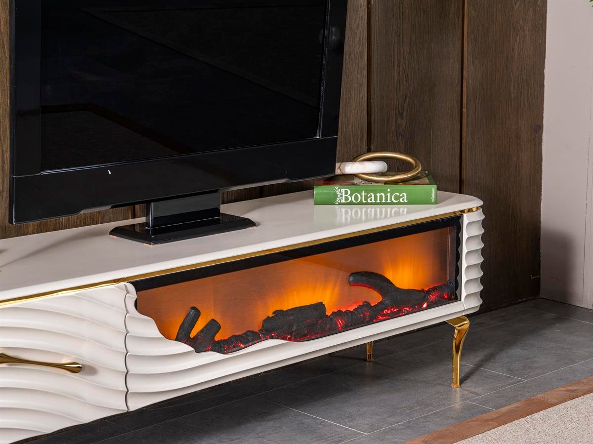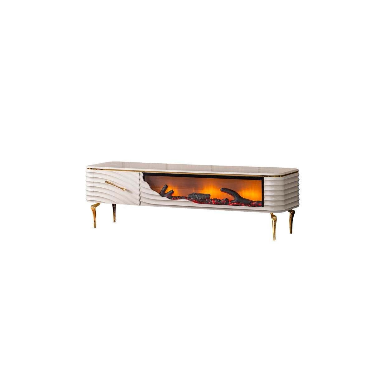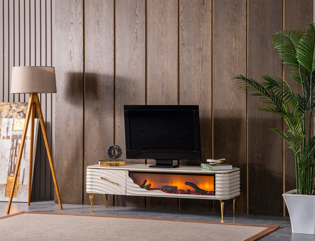 Móvel TV com lareira digital - Branco com detalhes dourados
