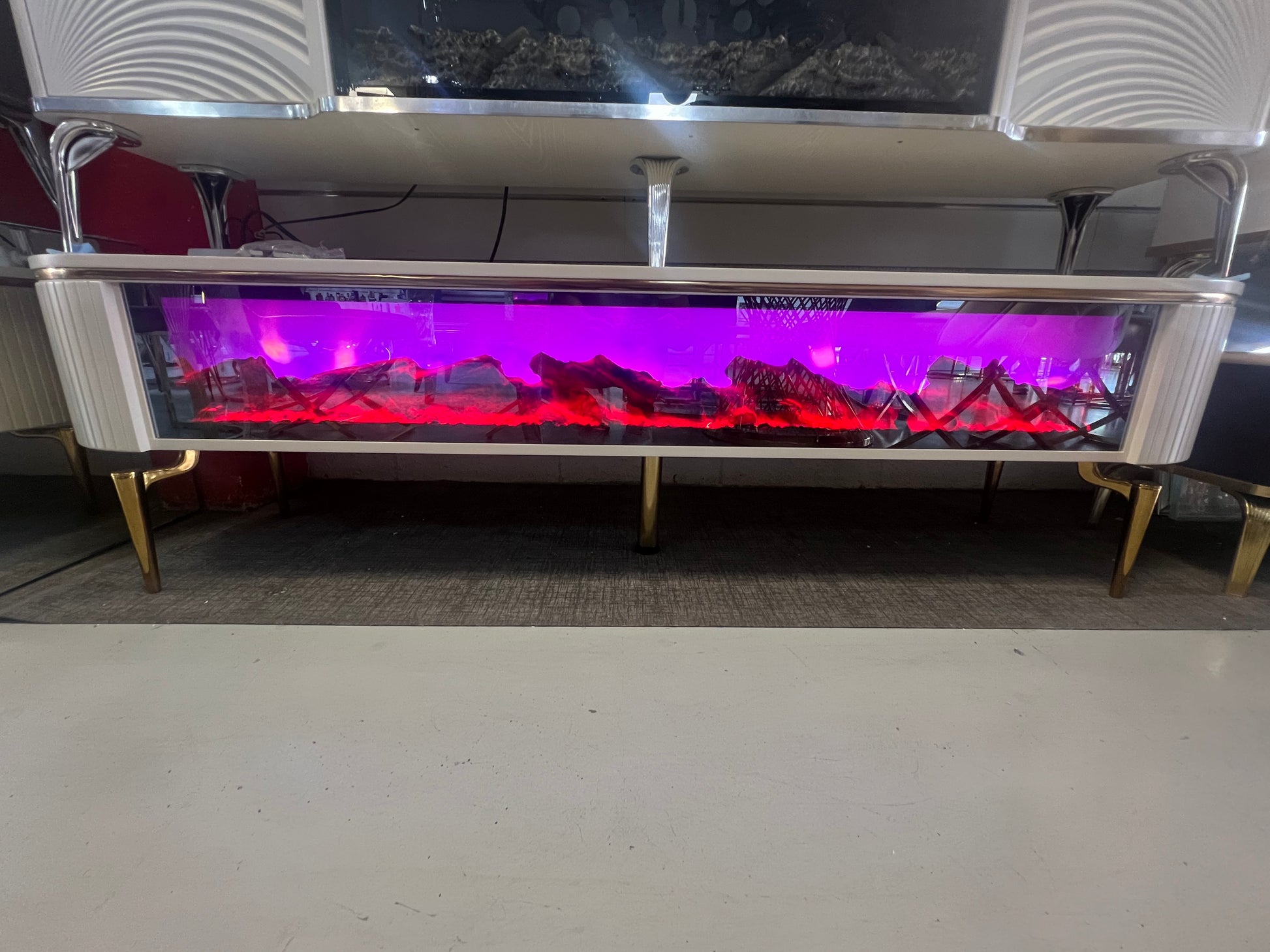 Lareira elétrica LED, efeito de fogo 3D, lareira sem calor, lareira segura, lareira com controle remoto, módulo de TV com armazenamento, móveis de estilo industrial, móveis fáceis de montar, móveis Al Madina Home Bazaar, decoração moderna, lareira realista, lareira para sala de estar.
