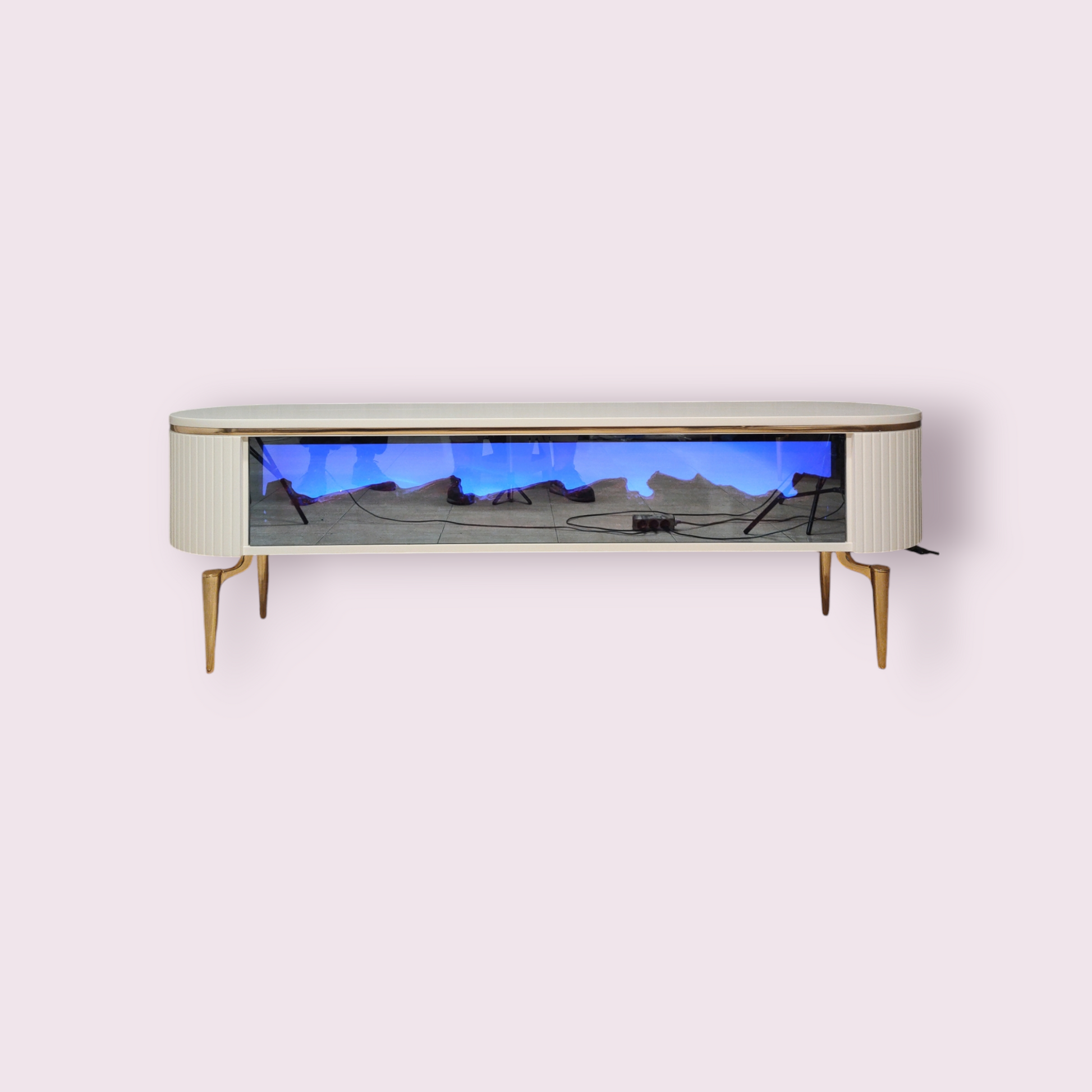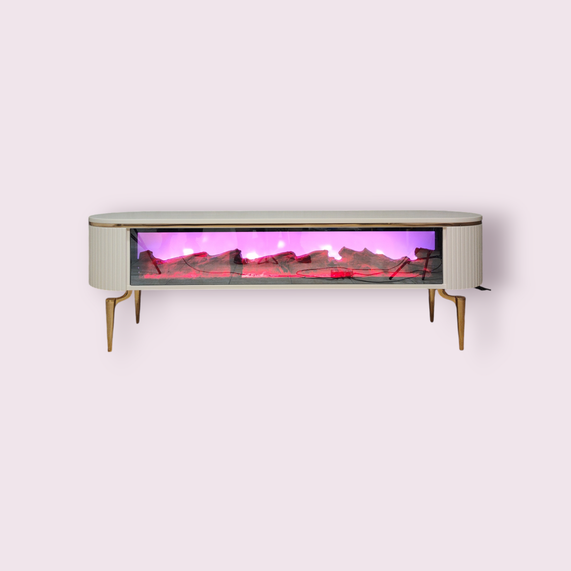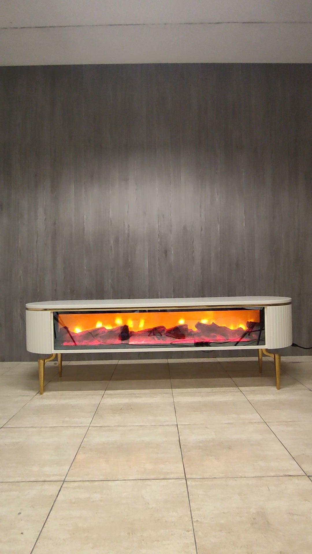 Móvel TV com lareira digital - Branco com detalhes dourados