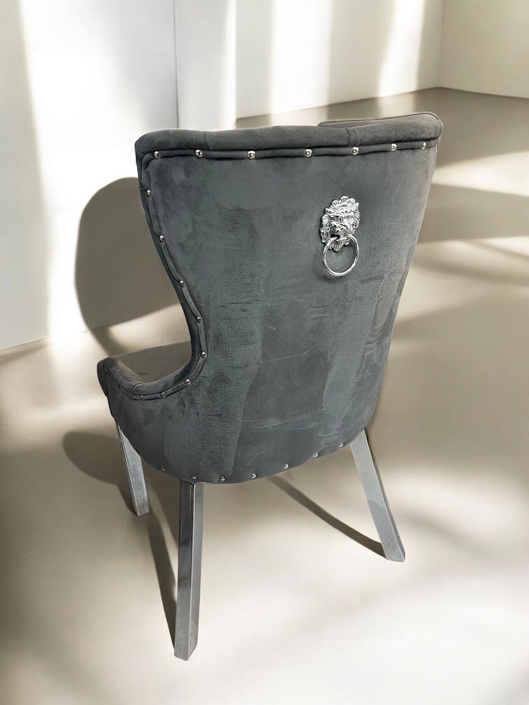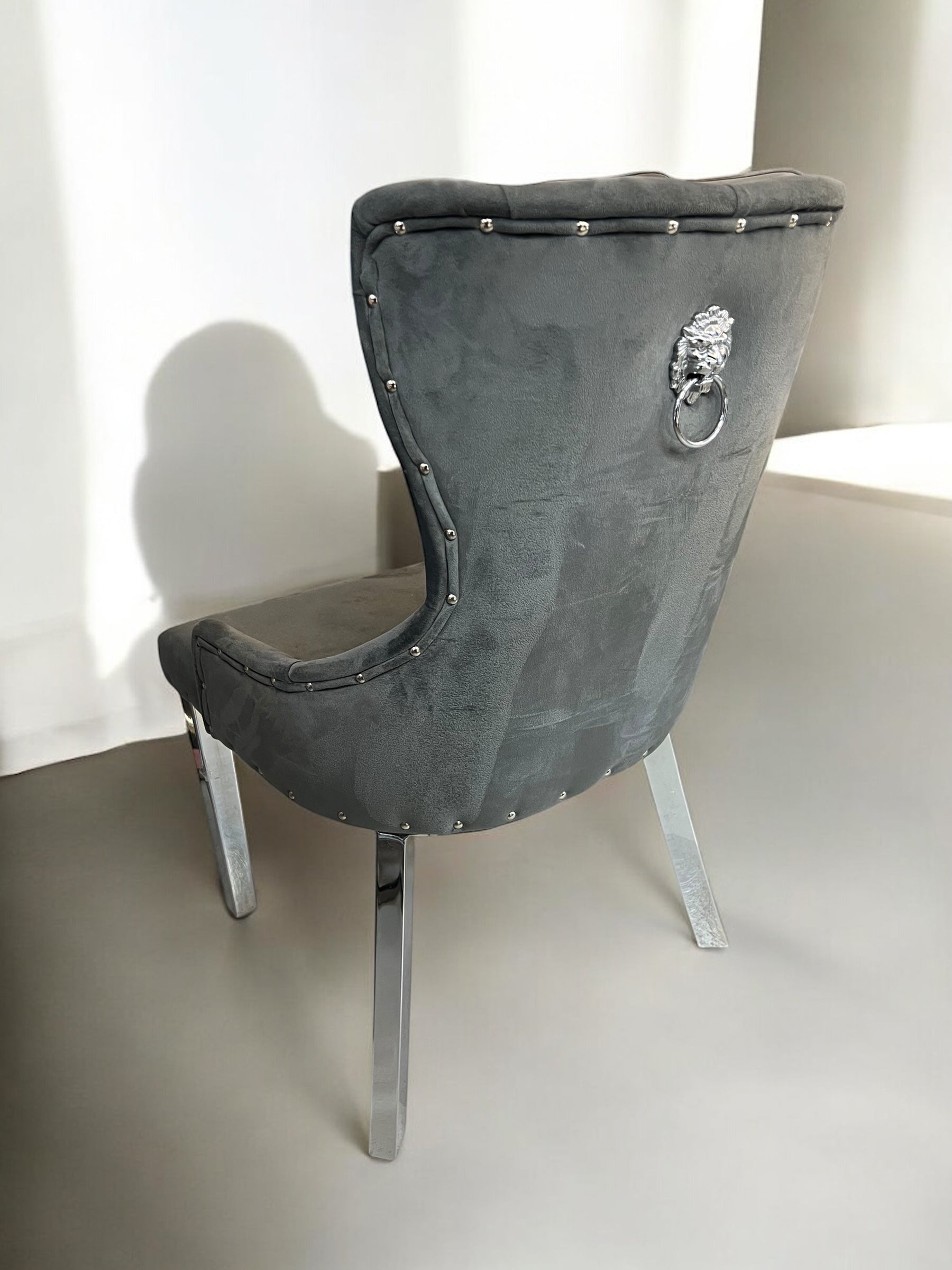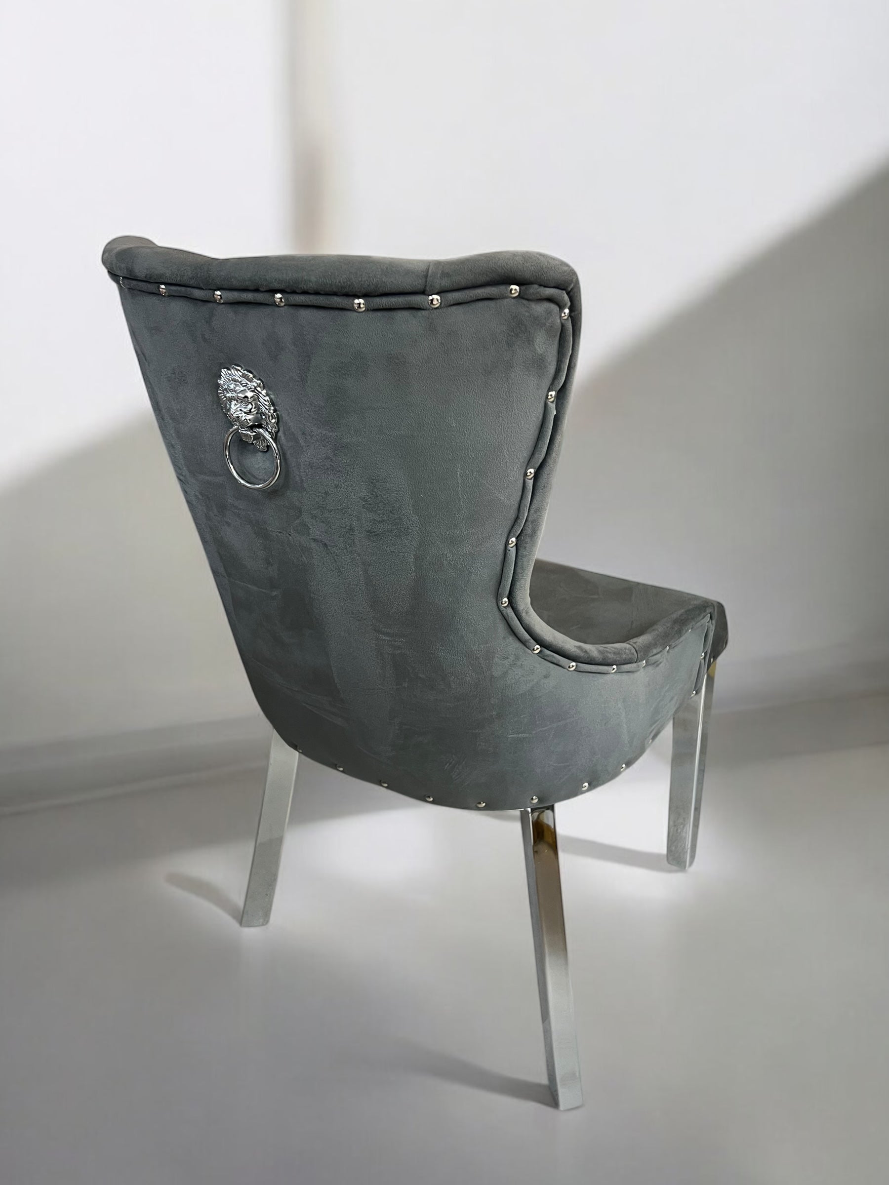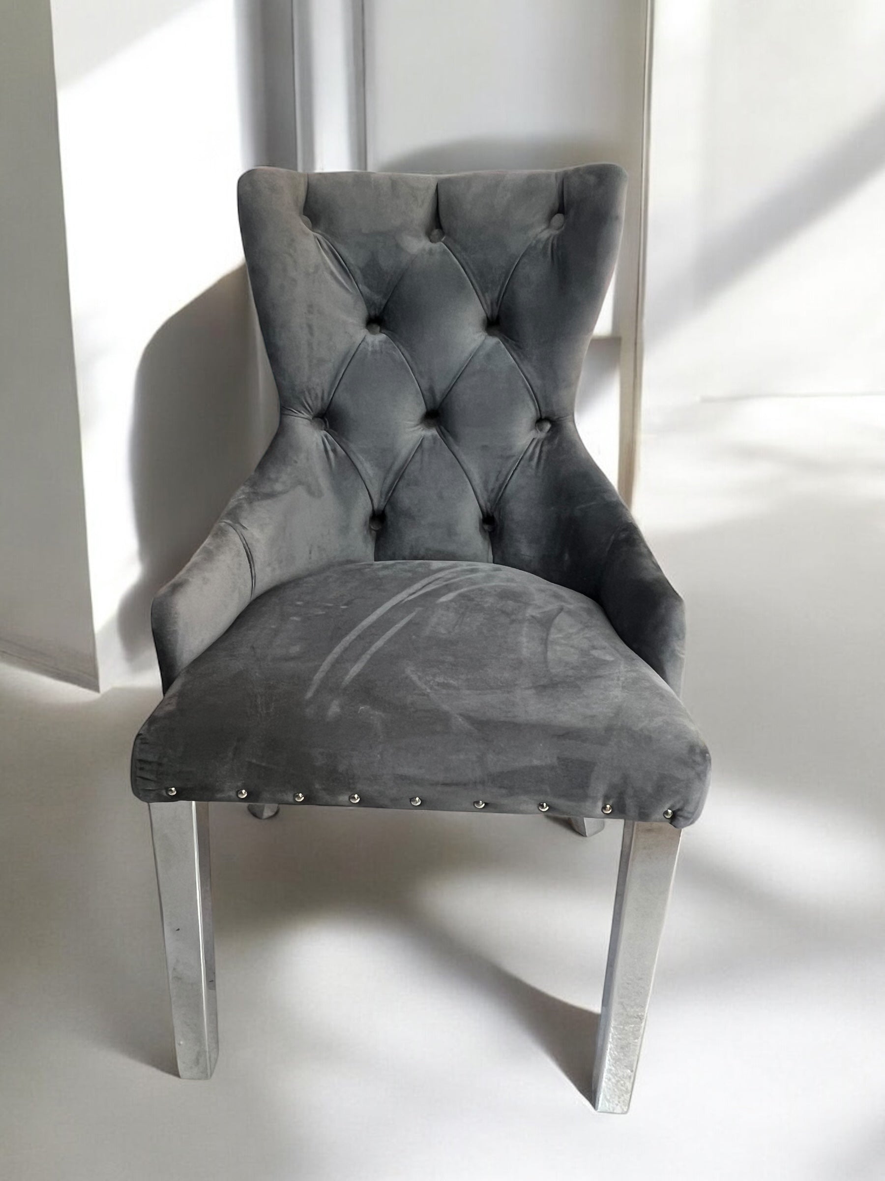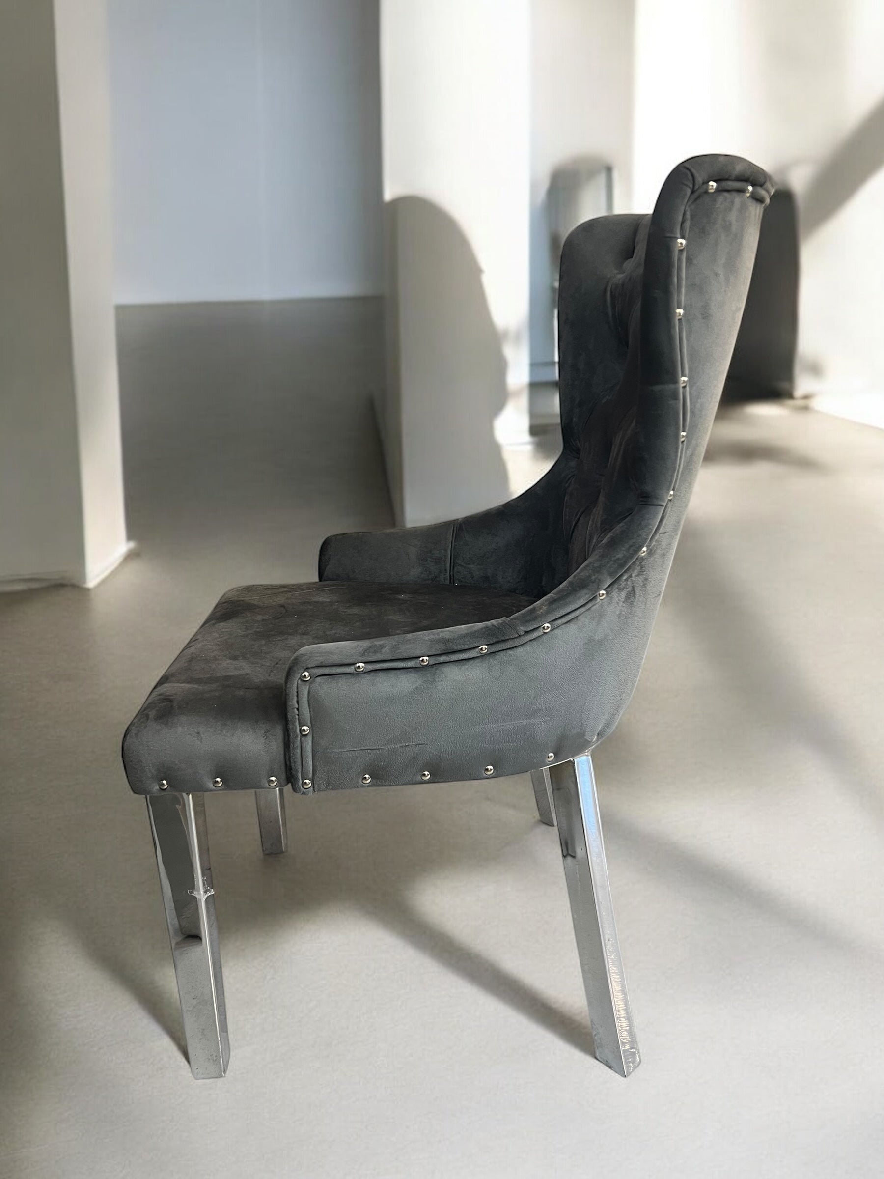 Cadeira de jantar BABYFACEV37 em veludo cinza escuro com pernas em metal prateado