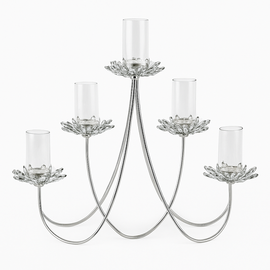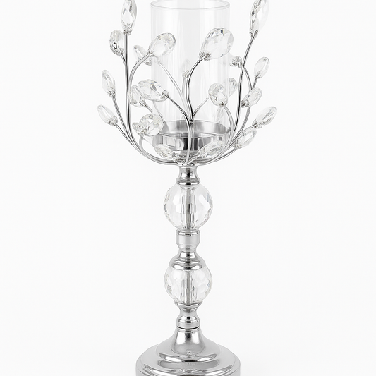 Candelabro Plateado con Pétalos de Cristal y Detalle de Doble Esfera ✨