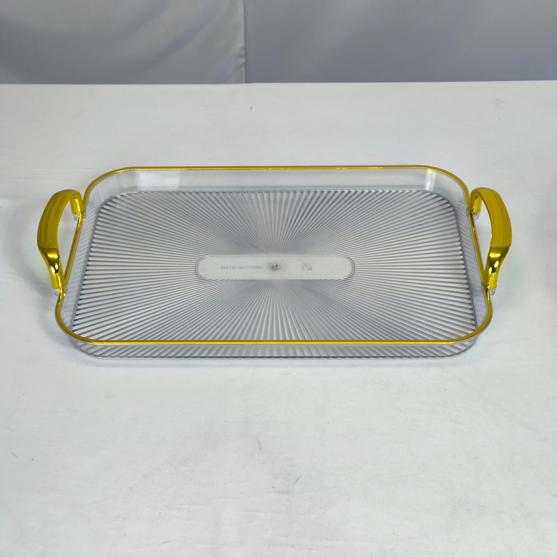 Um conjunto com um aspeto sofisticado e um toque de alta qualidade. Tabuleiros de plástico com pegas douradas para servir com elegância e valorizar qualquer mesa posta.