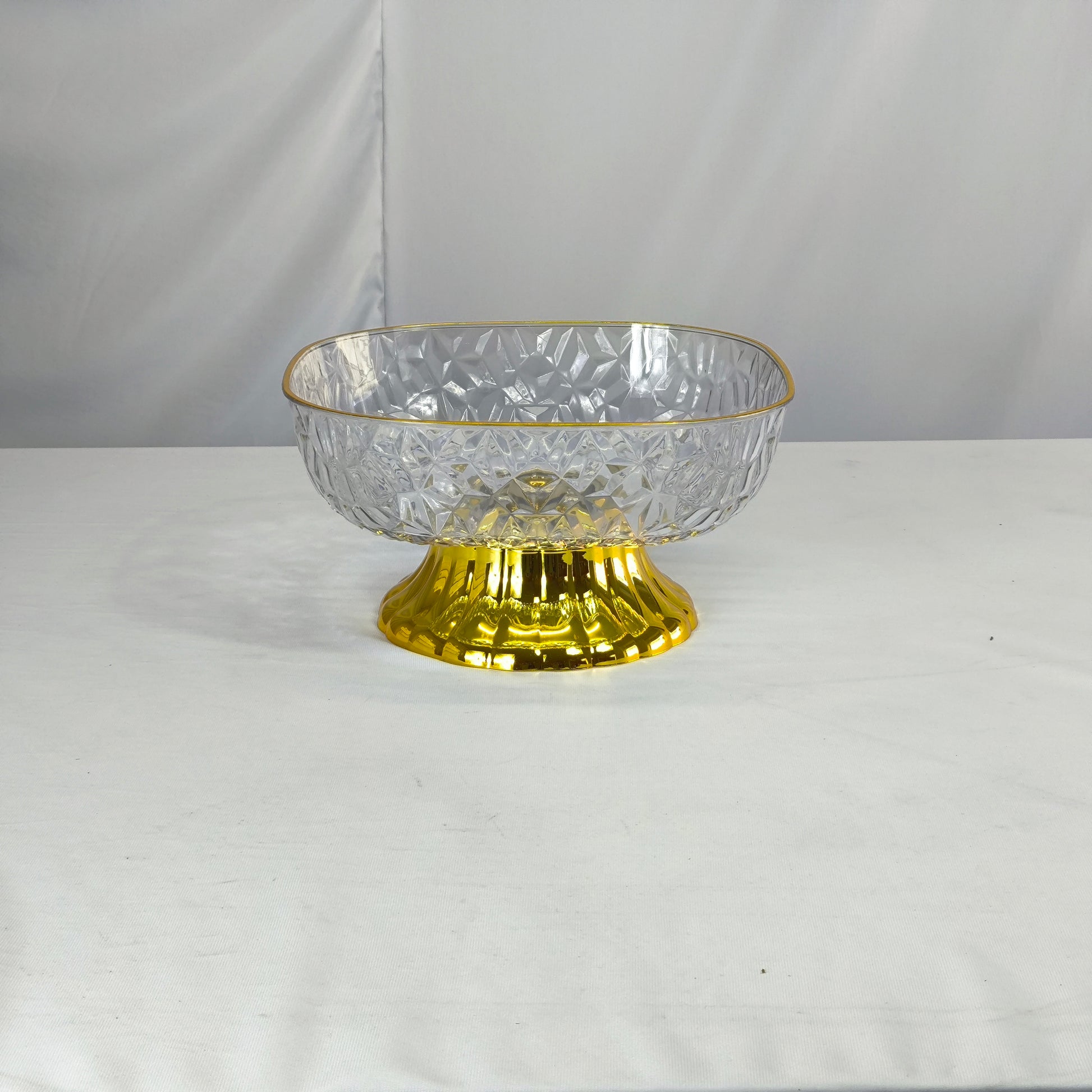 Fruteira em plástico esculpido com base dourada – elegante peça central