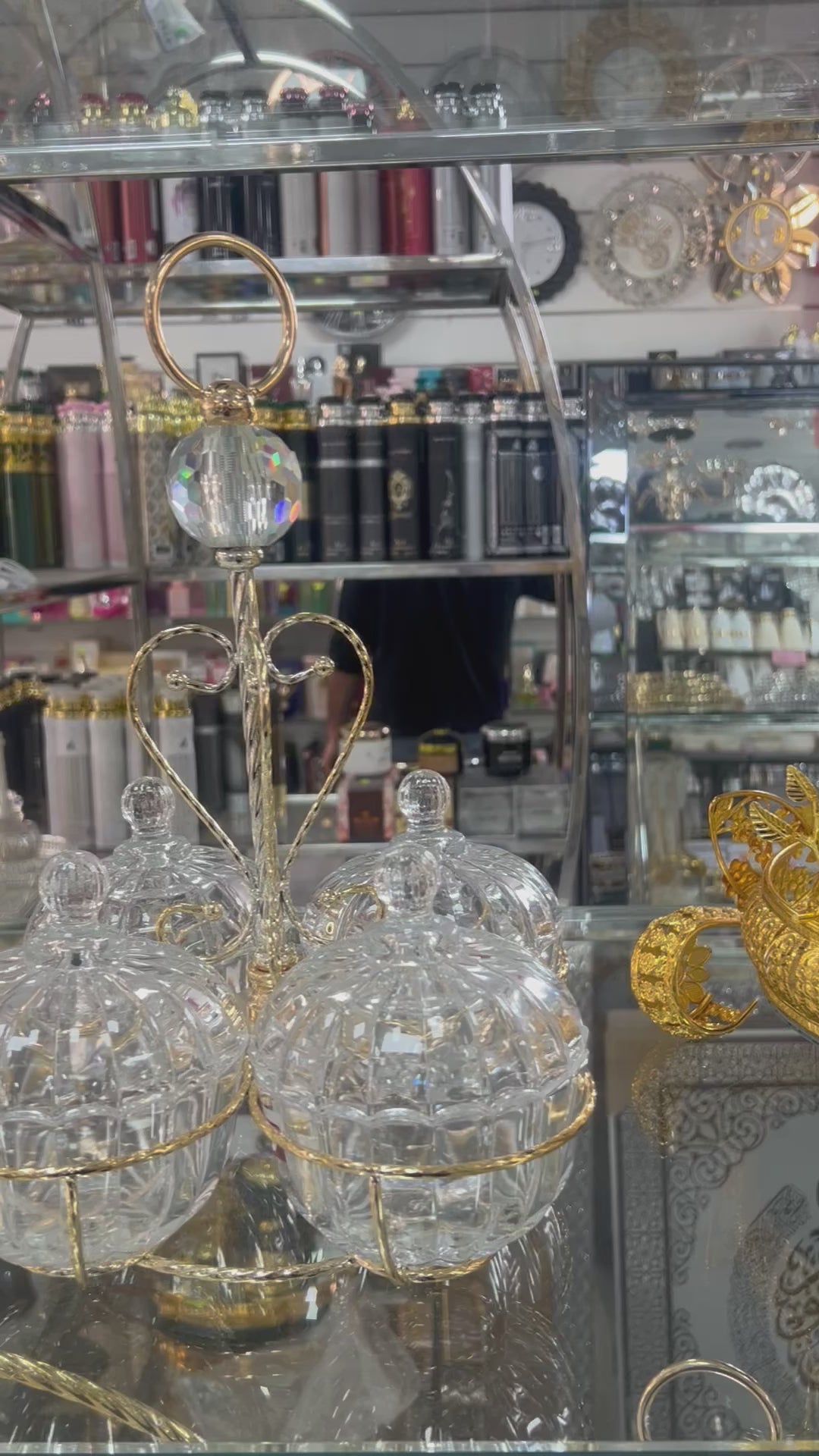 ✨ El soporte central incluye un adorno de cristal facetado y asa superior, que combina funcionalidad y belleza. Ideal para mesas de comedor, salones o eventos especiales, este conjunto destaca por su equilibrio entre diseño clásico y sofisticación moderna.