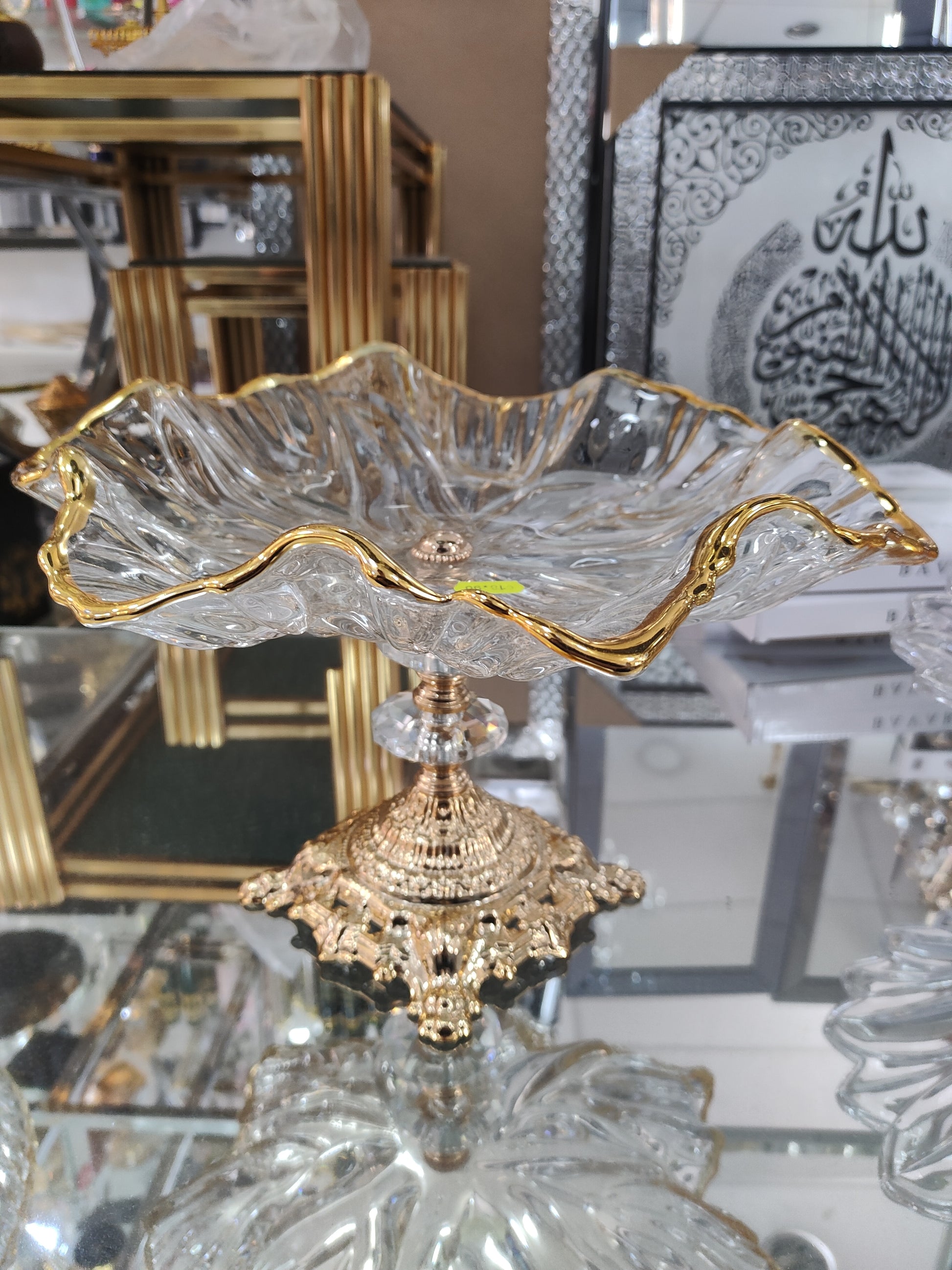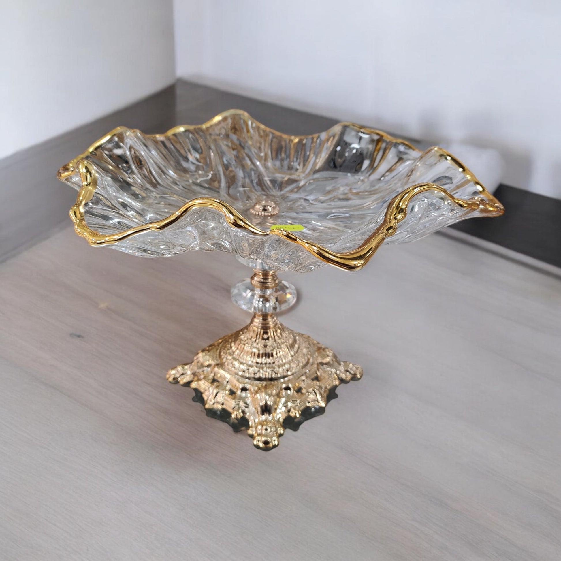 💎 Ideal para servir frutas, dulces o decorar con flores y velas, su base metálica ornamentada ofrece gran estabilidad y un diseño que refleja distinción y elegancia. Perfecto para centros de mesa, recepciones o salones decorativos.