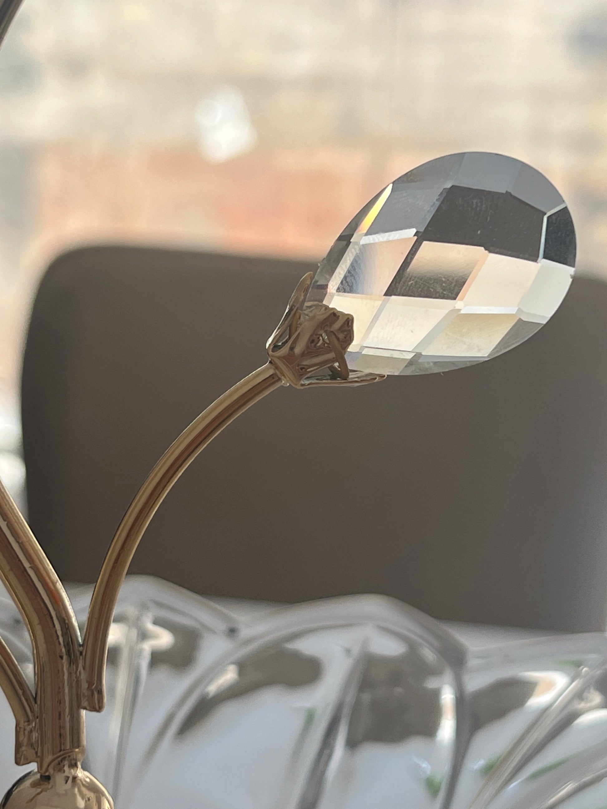 • Los detalles decorativos en forma de pétalos están hechos de vidrio.