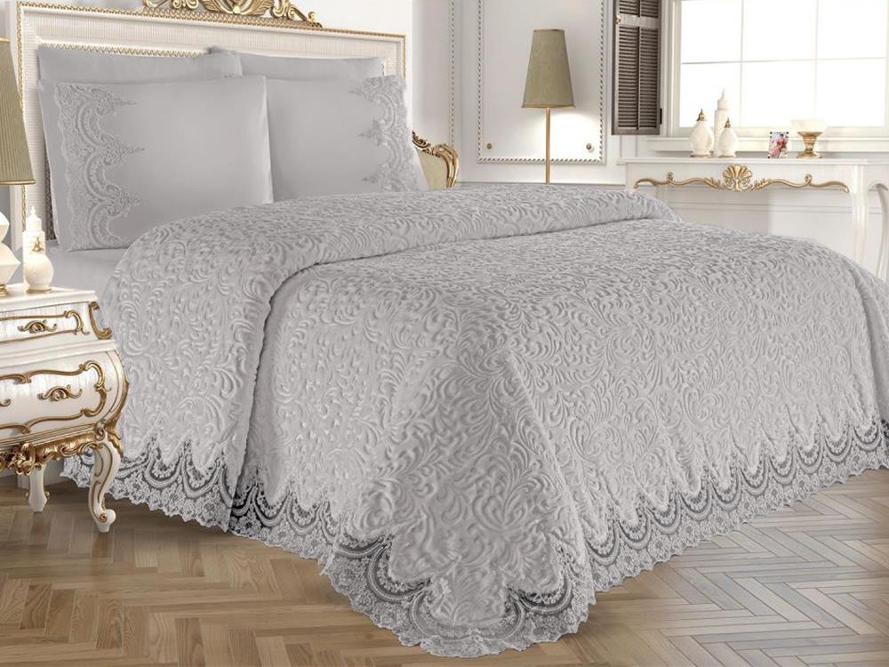 Este exclusivo conjunto de cama combina a suavidade do cetim de algodão com o luxo da renda turca .