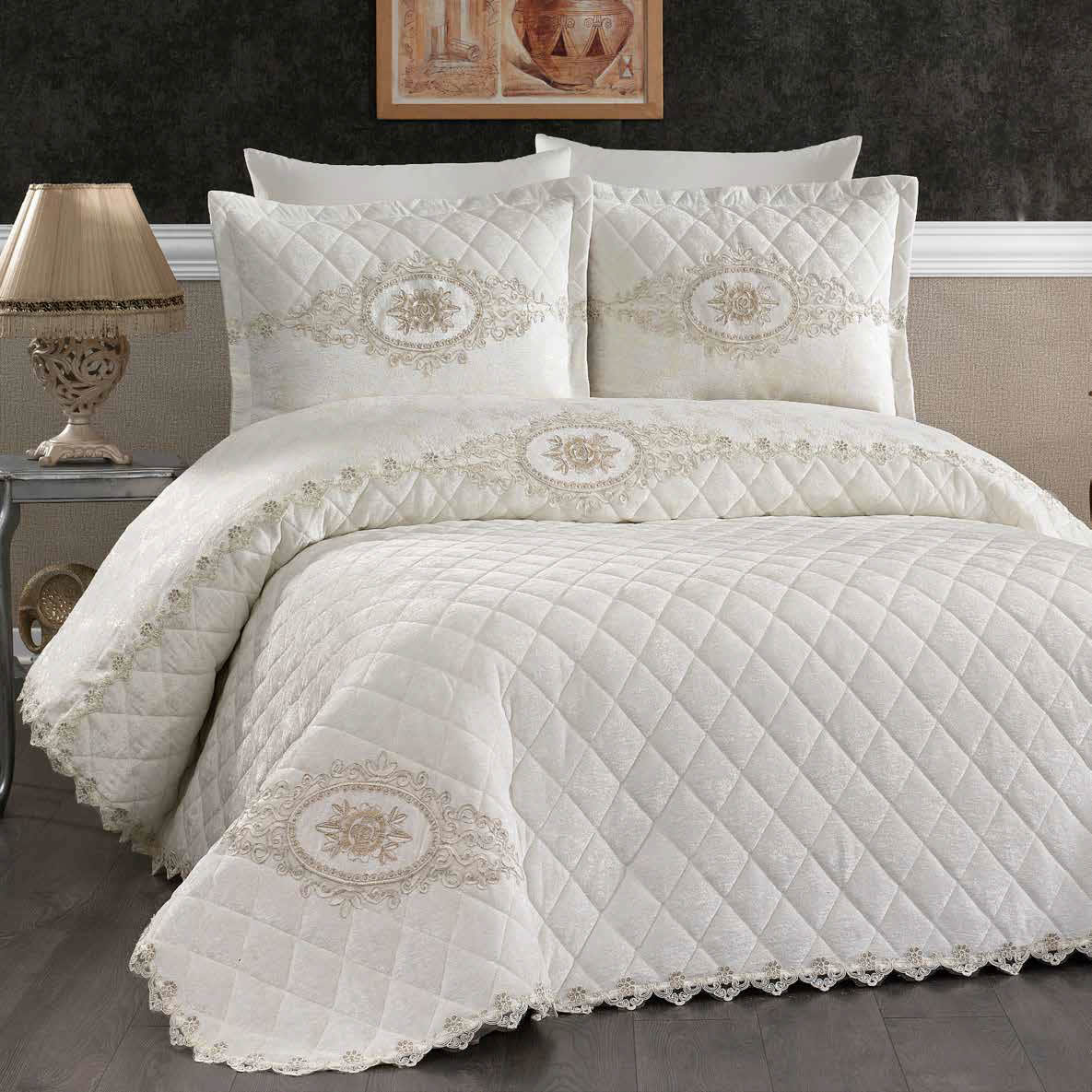 Conjunto de cama de luxo Marianna – colcha acolchoada com renda – creme