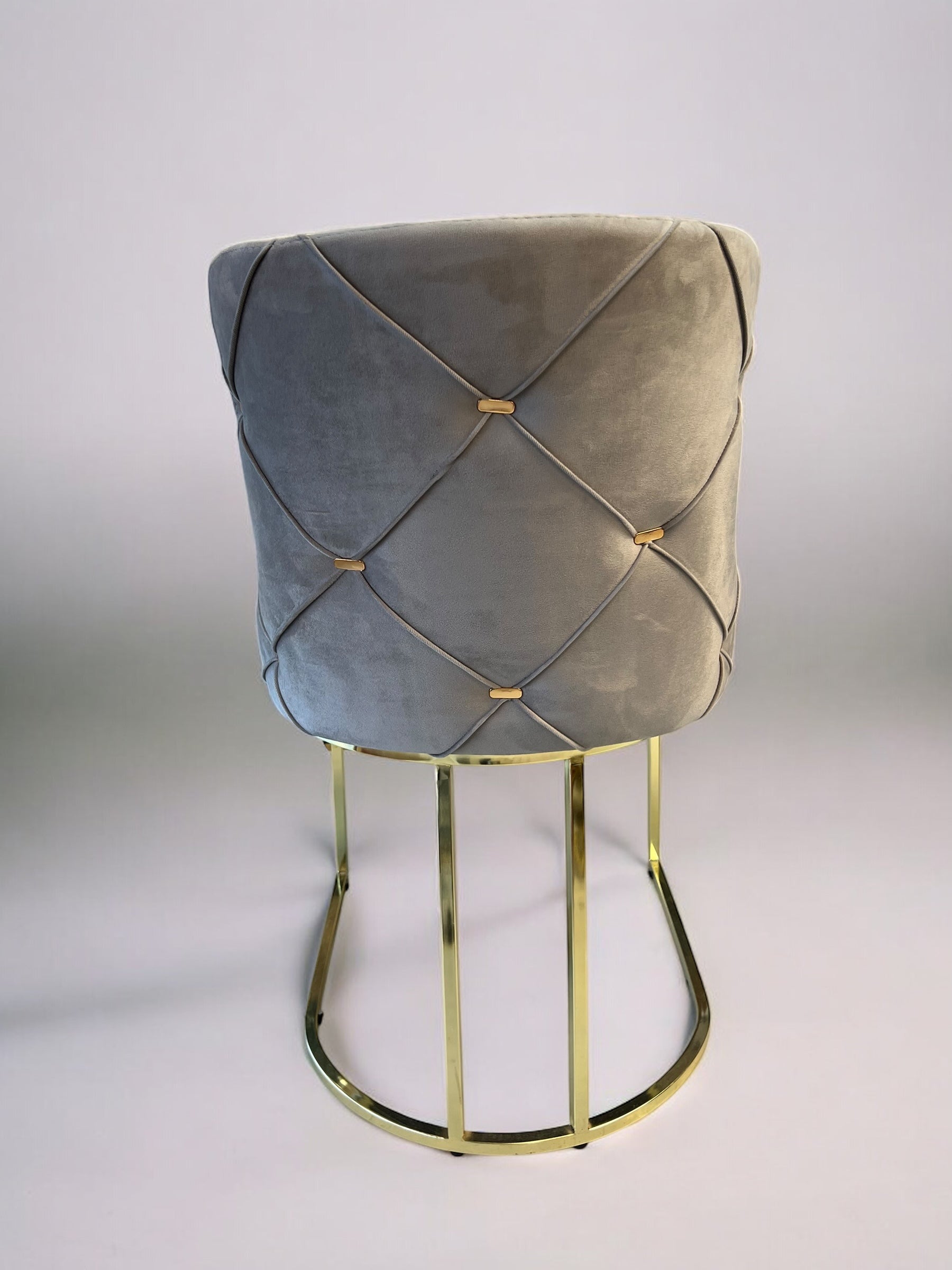 É estofada em veludo macio, com detalhes glamorosos e pernas combinando. E foi projetada para oferecer um assento incrivelmente confortável.